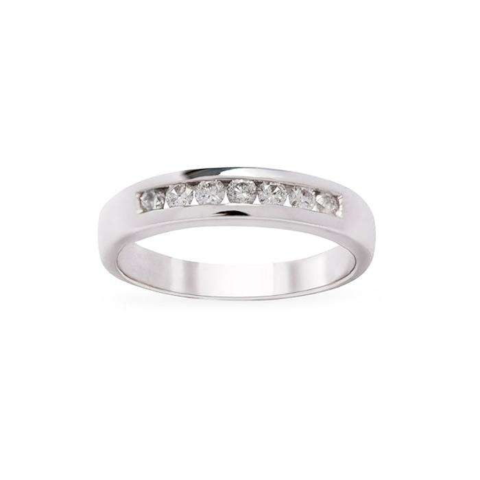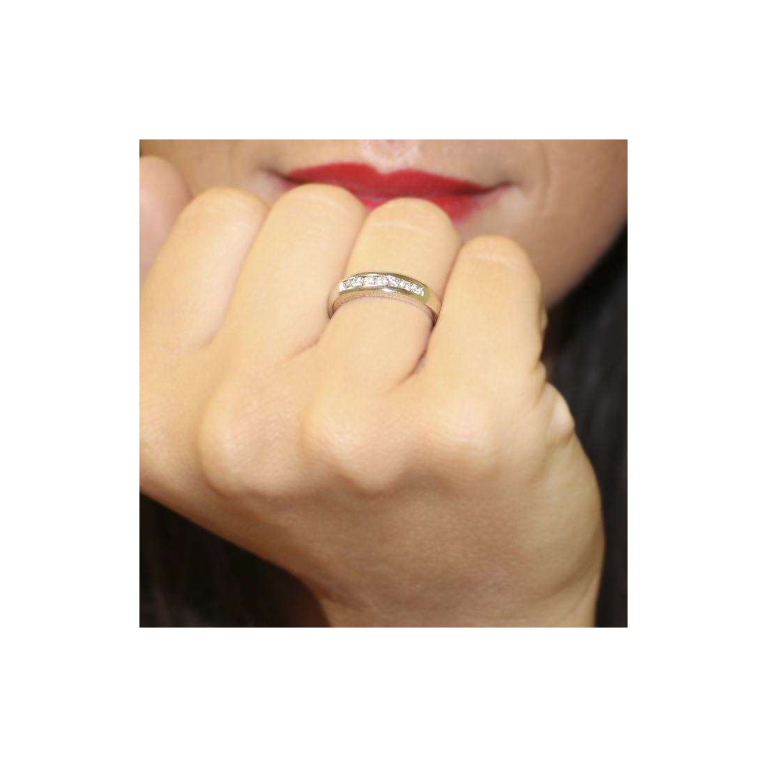 Anillo en oro blanco de 18 quilates con 7 diamantes en talla brillante de 0.04 quilates cada uno montados en carril.