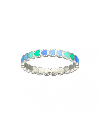 Anillo en Plata 1ª Ley 925 con corazones en esmalte azules