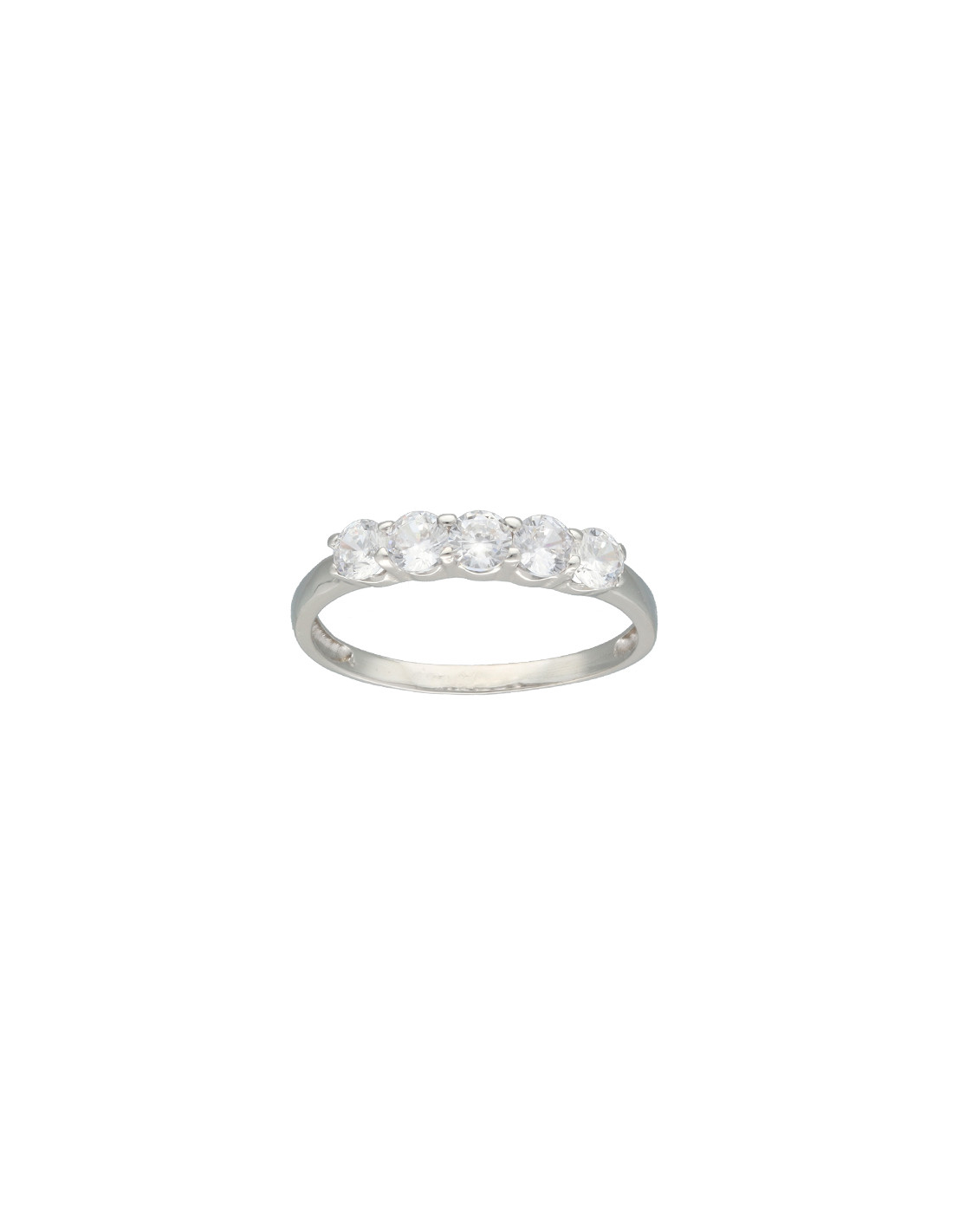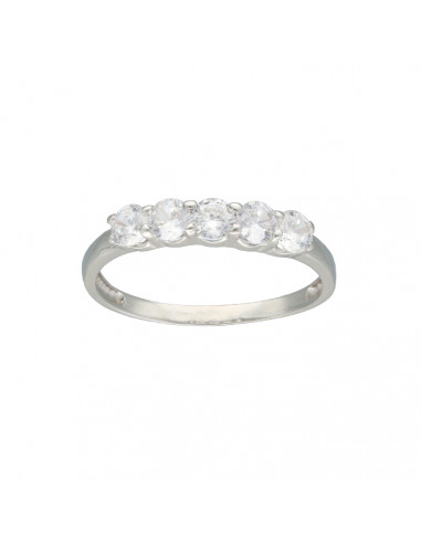 Anillo en oro blanco de 18 quilates con 5 circonitas engastadas.