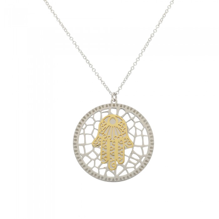 Platalia PULSERA PLATA MANO DE FÁTIMA 776026 29,90 € Pulsera en plata de 1ª Ley con detalle de círculo con mano de Fátima bicolor. Círculo de 2 cm de diámetro. Largo total de la cadena de 20 cm, con anillas reductoras a 18 cm. Cierre de mosquetón. Añadir a carrito