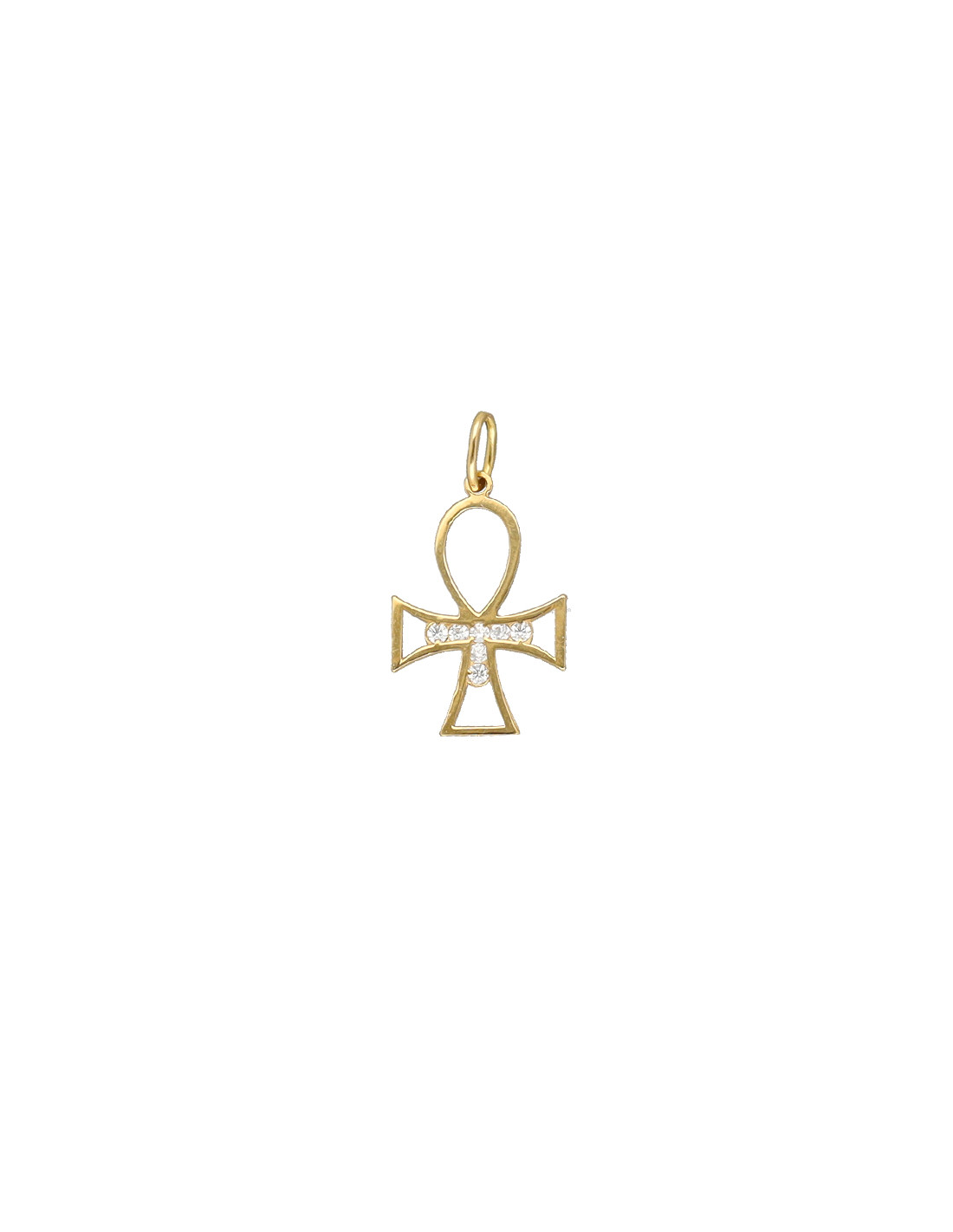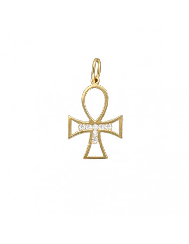 Colgante en oro de 18 quilates con forma de la cruz de la vida, calado con dirconitas.