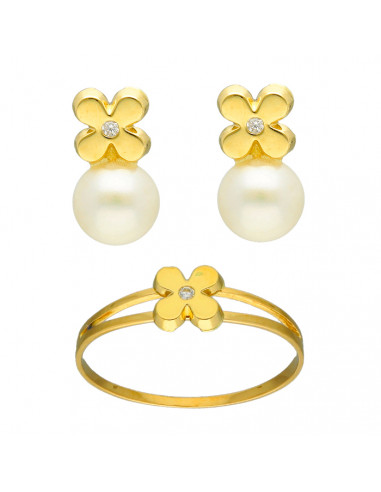 Juego de pendientes y anillo en oro de 18 quilates.