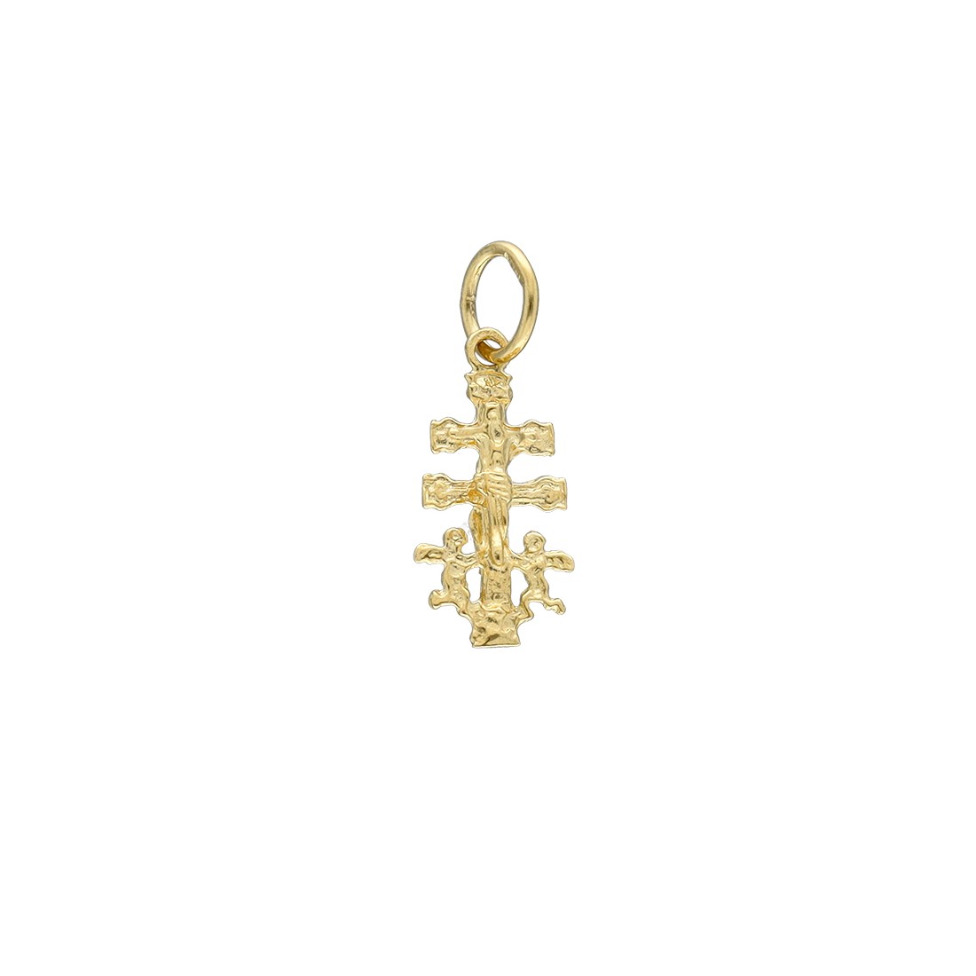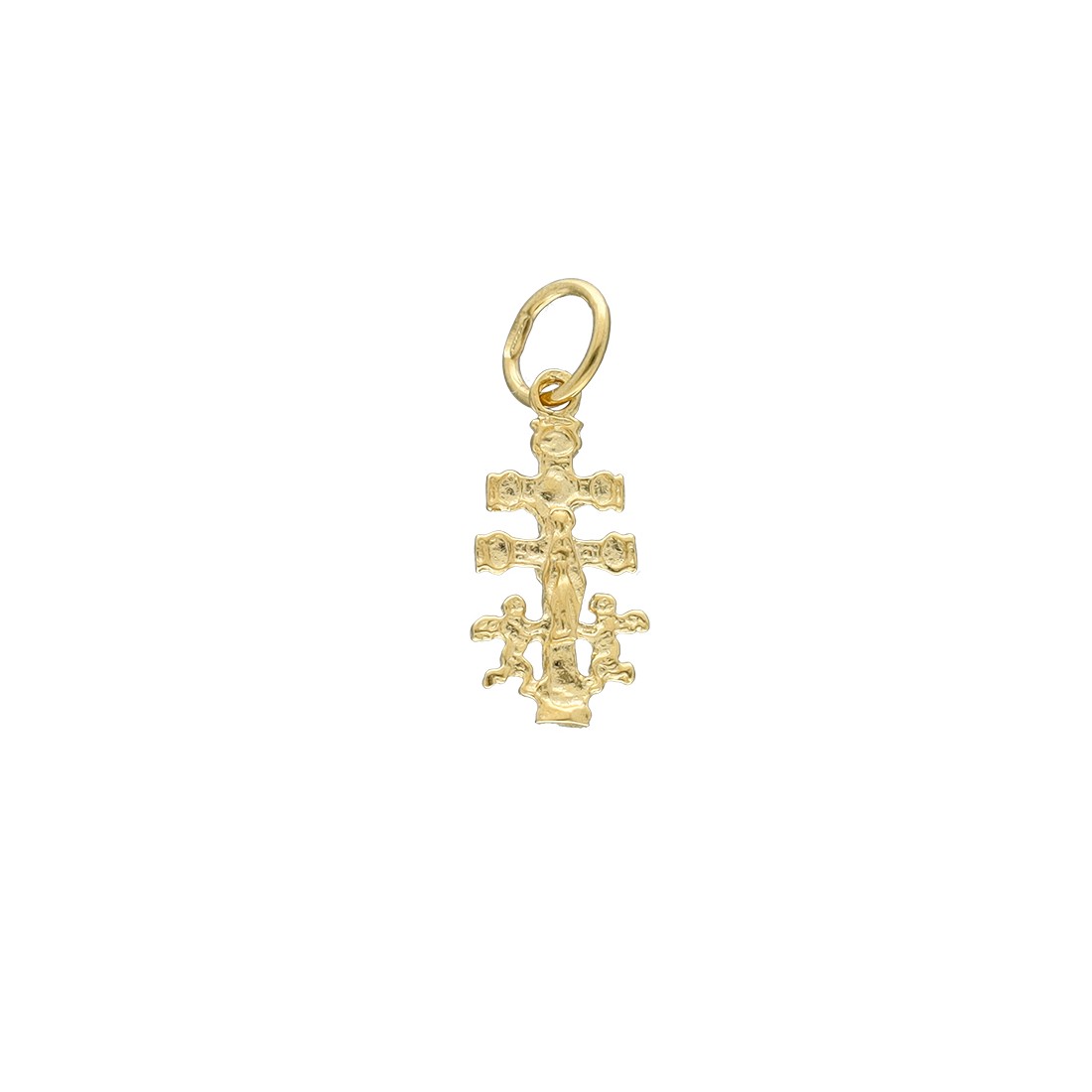 Cruz de Caravaca en oro de 9 quilates. Tamaño de 17 milímetros de alto y 8 milímetros de ancho.