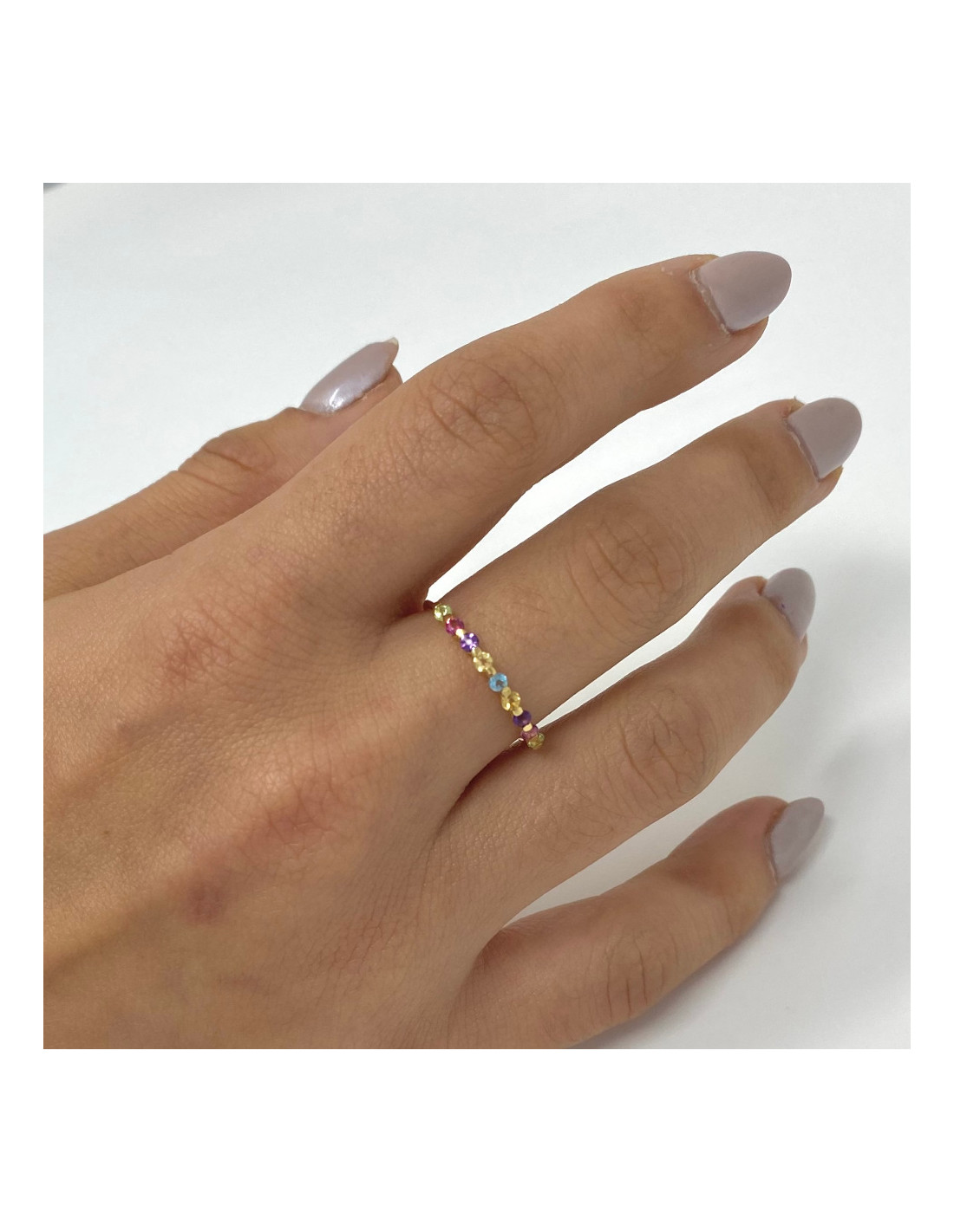 Anillo en oro de 18 quilates con circonitas en colores engastadas.