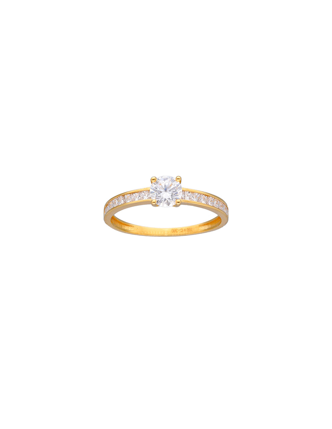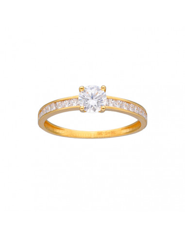 Anillo en oro de 18 quilates con circonitas en carril y una central en garra.