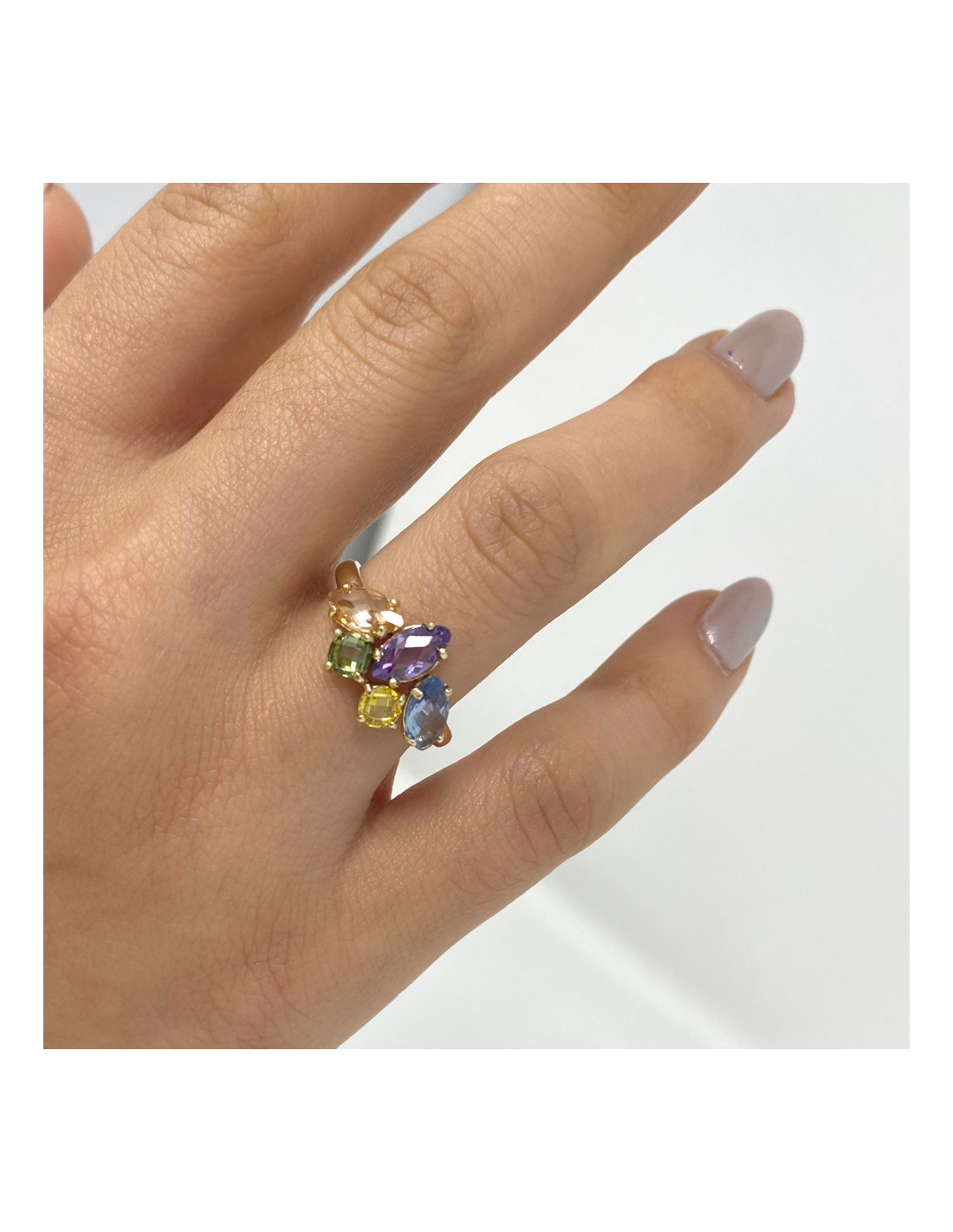 ANILLO EN ORO CON 5 PIEDRAS DE COLOR
