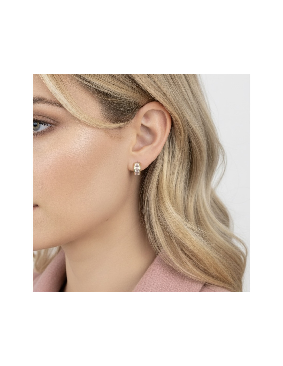 Pendientes en oro de 18 quilates con circonitas montadas en carril con forma de baguette y cierre de presión.