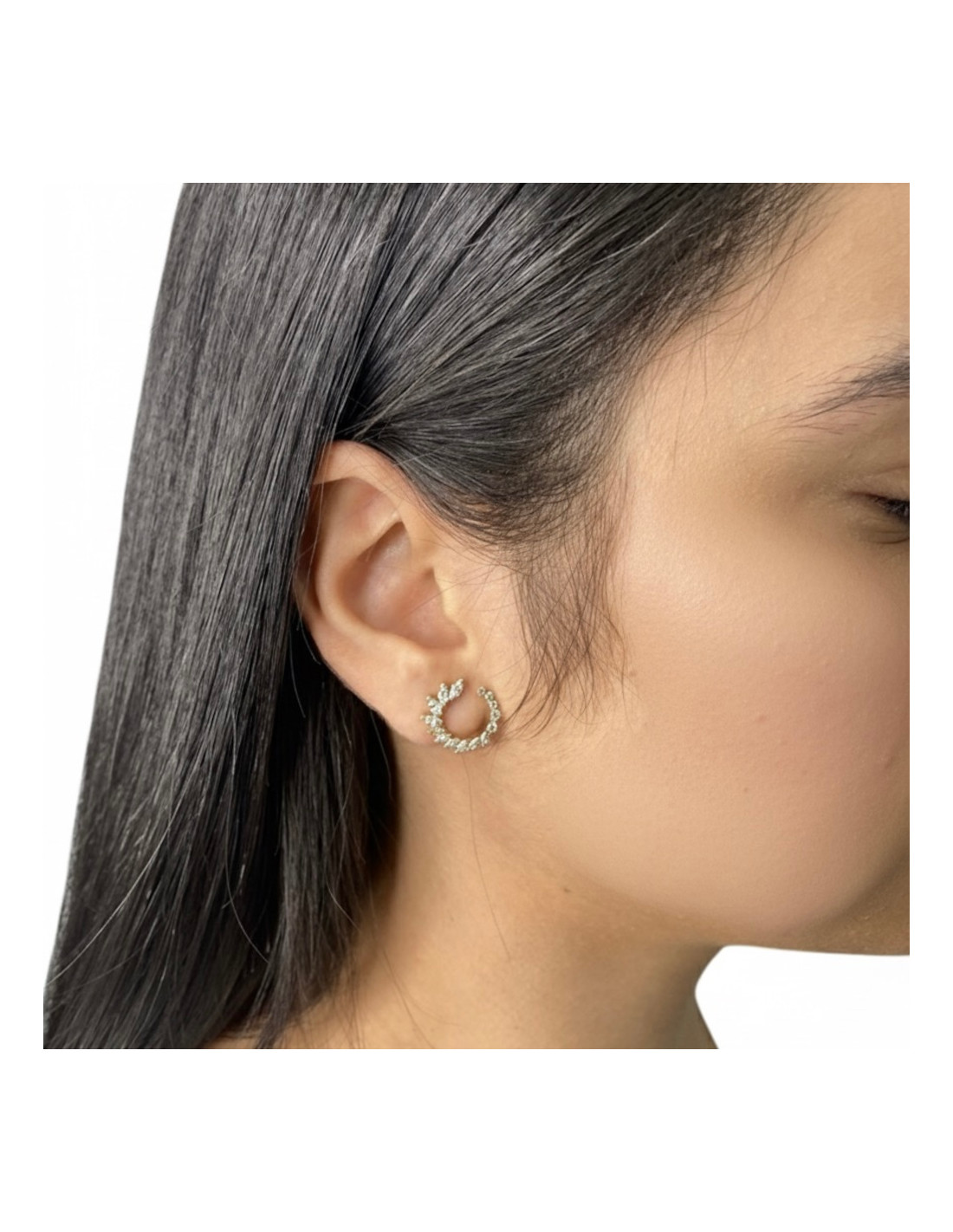 Pendientes en oro de 18 quilates con forma de circulo abierto y circonitas.