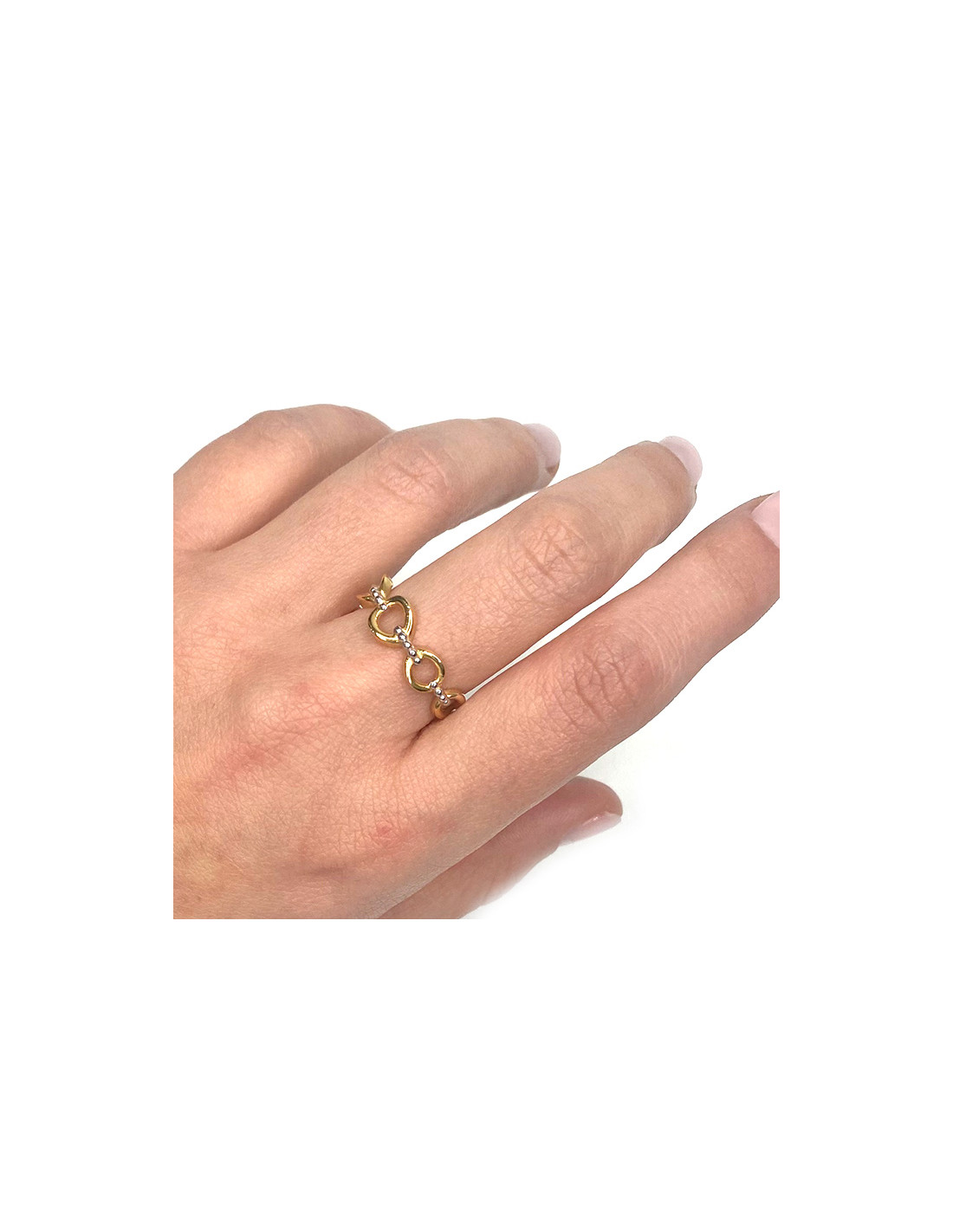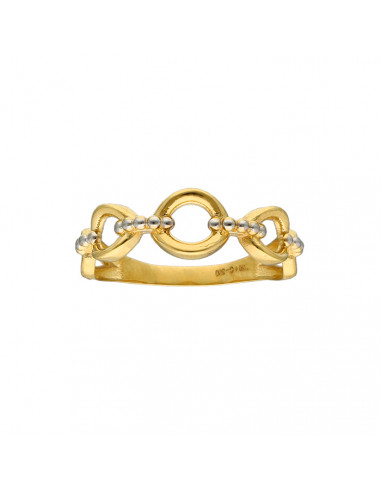 Anillo en oro blanco y amarillo de 18 quilates con forma de circulo y circonitas.