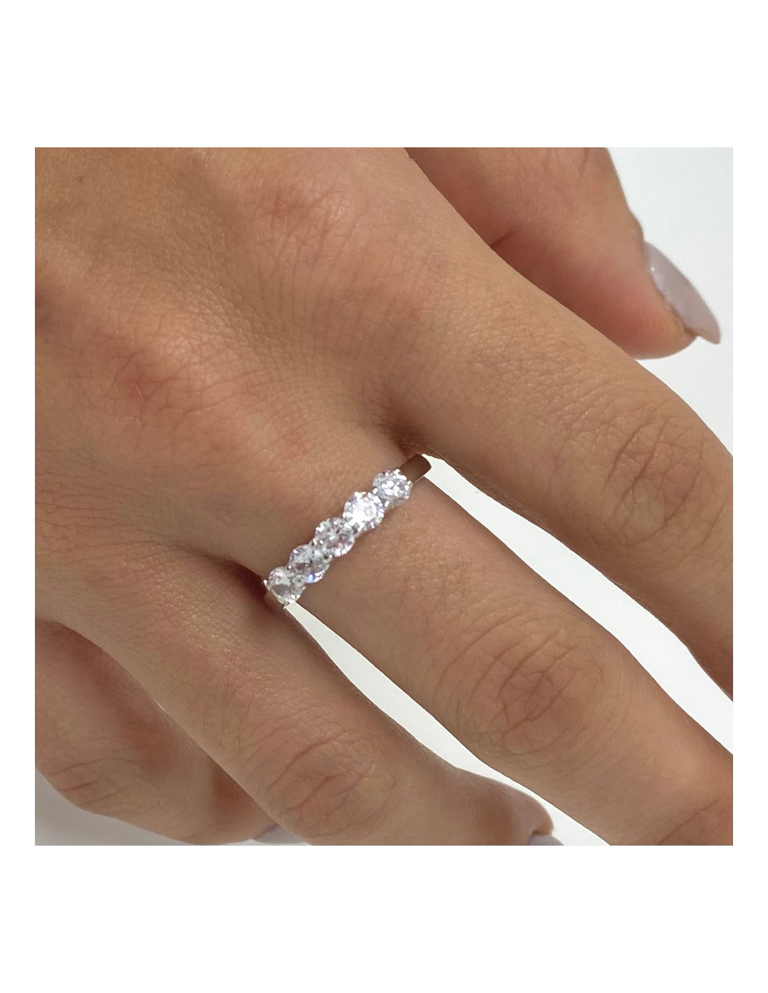 Anillo en oro blanco de 18 quilates con 5 circonitas engastadas.