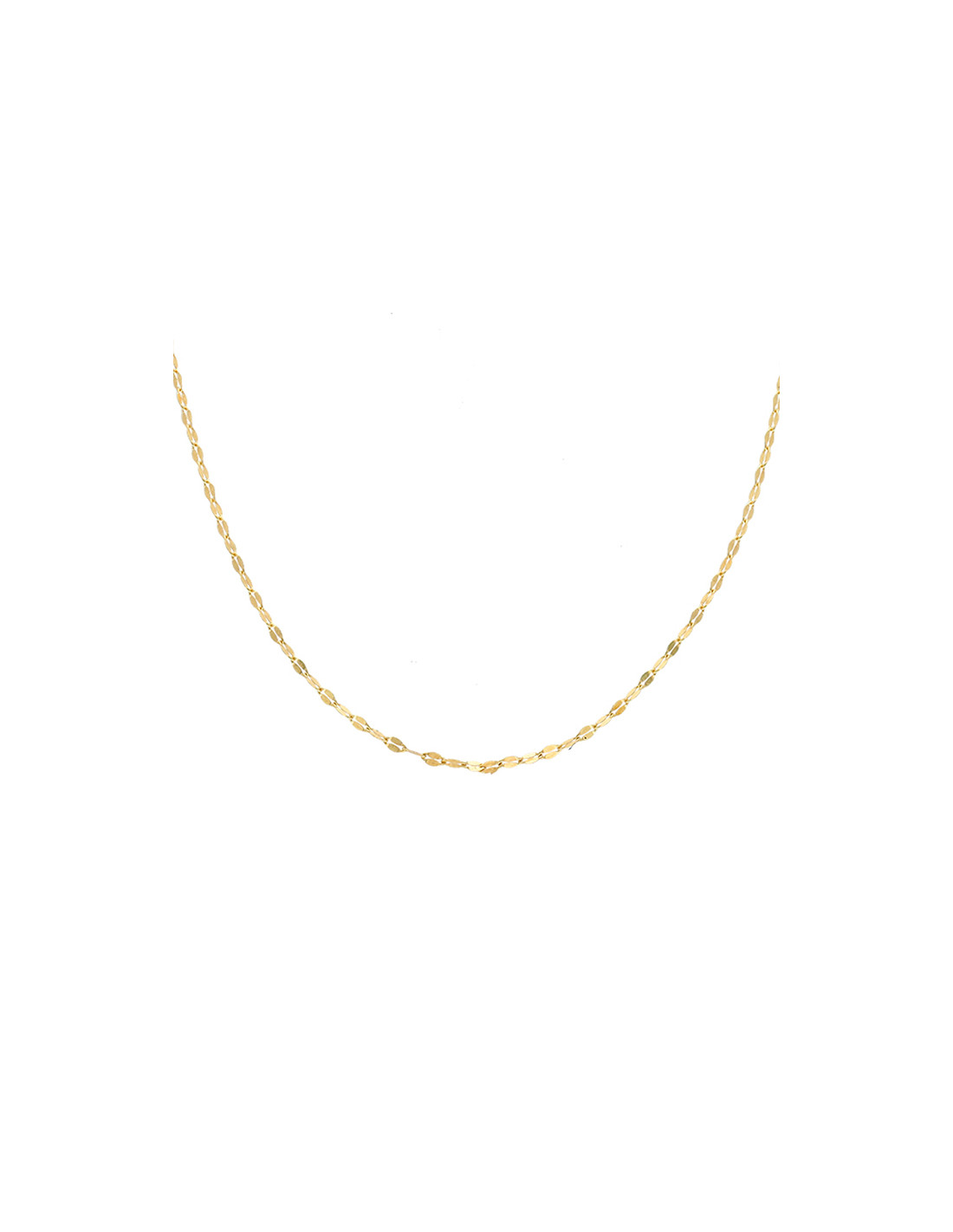 Cadena en oro de 18 quilates con forma de chapitas de 50 centímetros de largo.