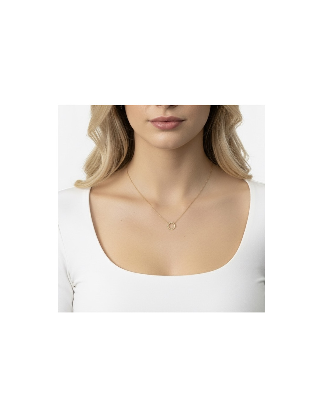 Gargantilla en oro de 18 quilates con colgante en forma de octógono y circonitas.