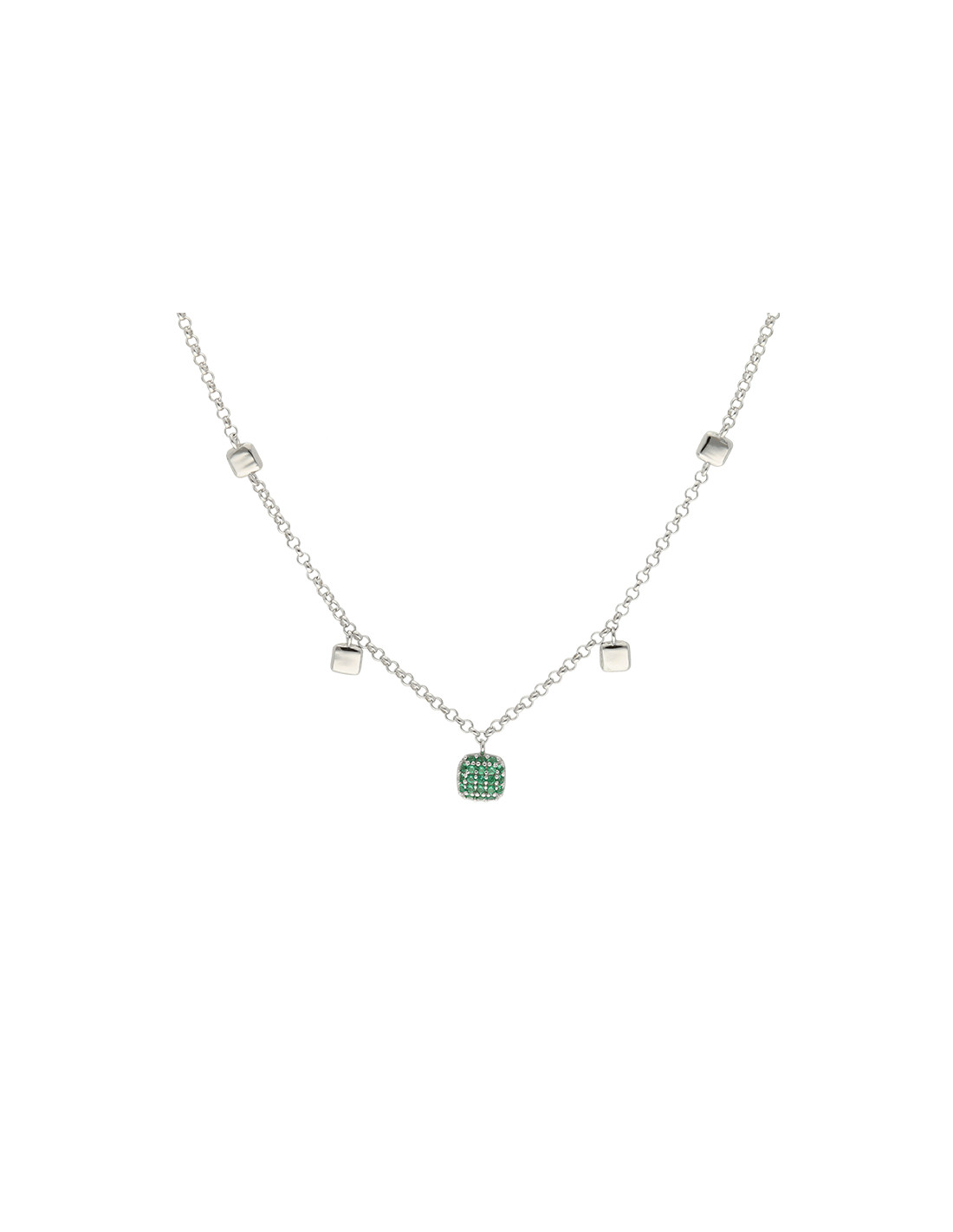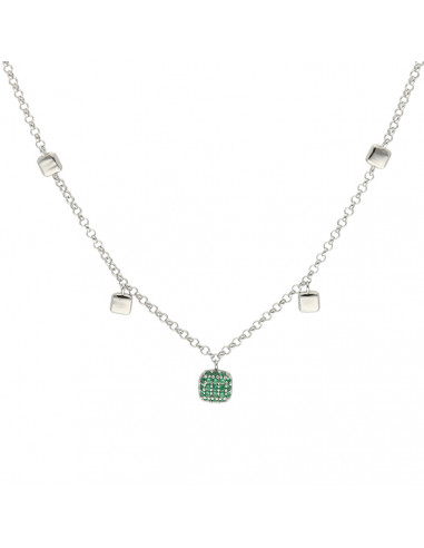 Gargantilla en plata de 1ª ley con circonitas en color verde con formas cuadradas.