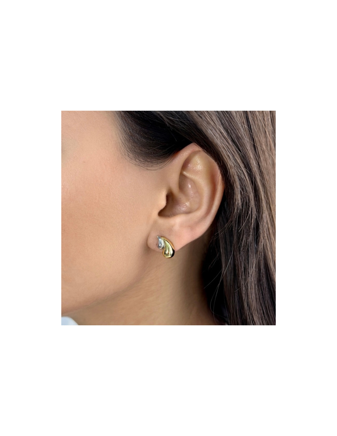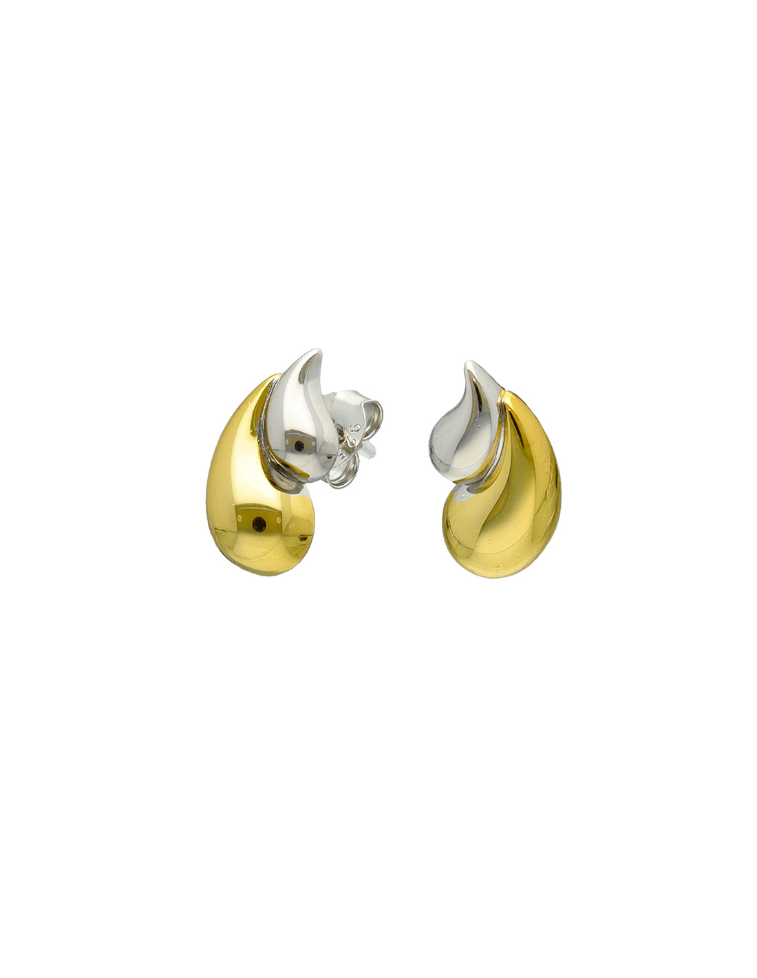Pendientes bicolores de plata de 1ª ley con forma de gotas. Tamaño: 15mm alto x 8mm ancho. Cierre de presión.