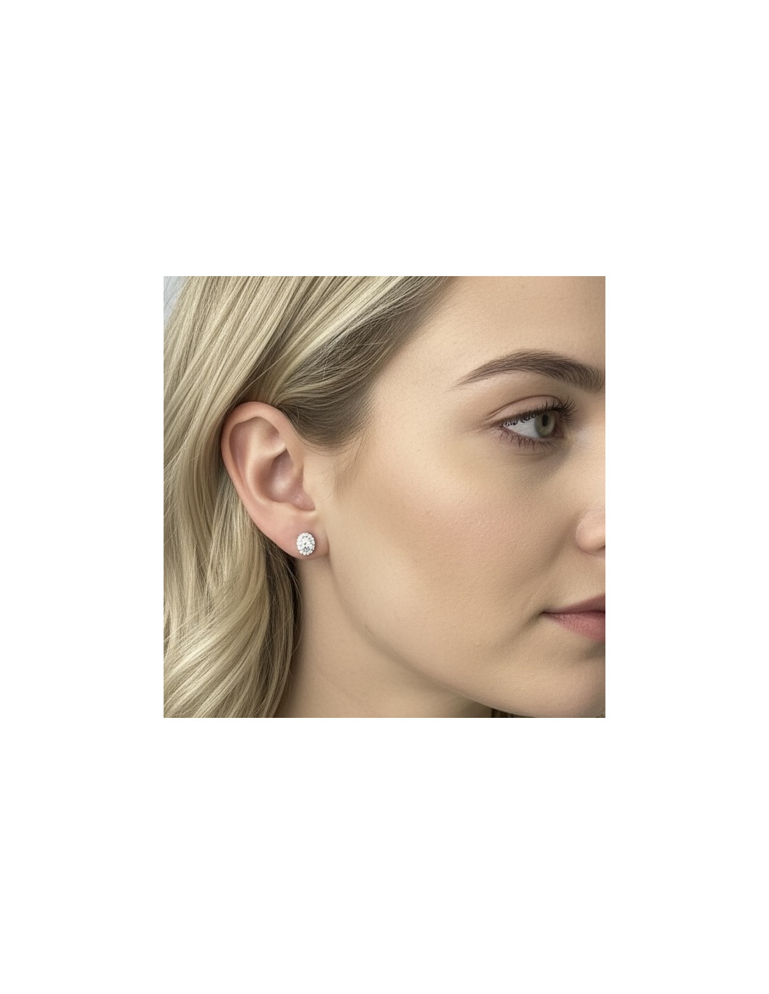 PENDIENTES DE ORO BLANCO DE 9 QUILATES CON CIRCONITA CENTRAL OVALADA RODEADA DE CIRCONITAS,CIERRE DE PRESIÓN