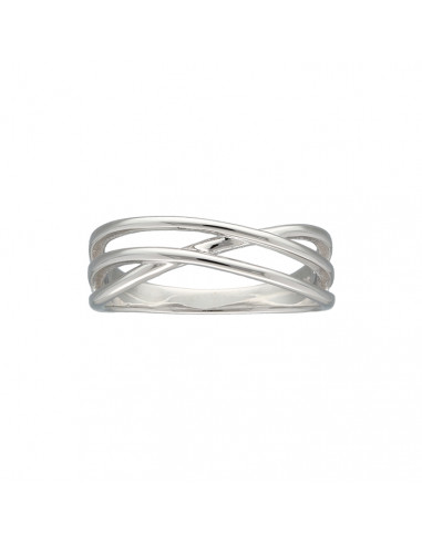 Anillo en plata de 1ª Ley con tres bandas cruzadas.