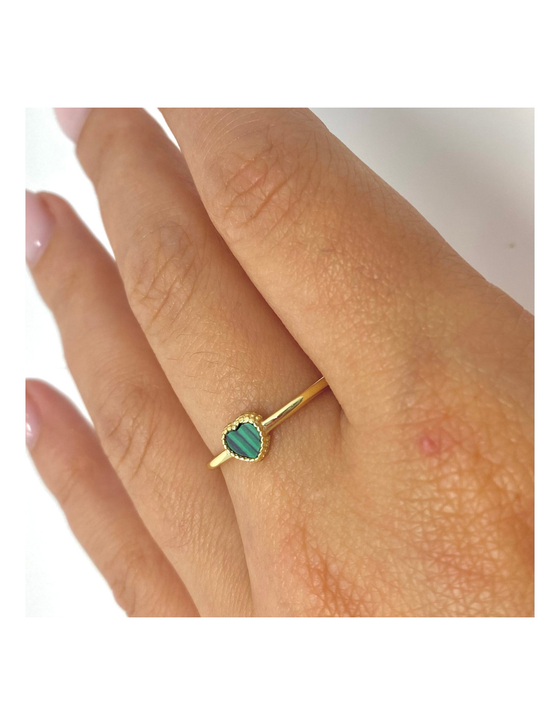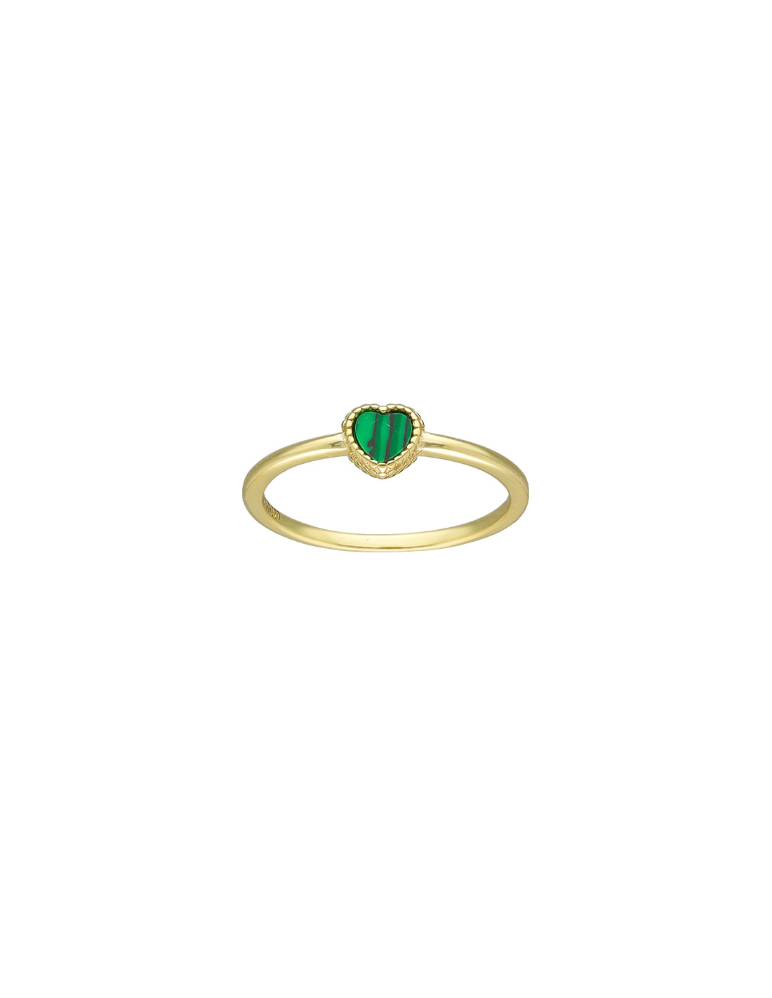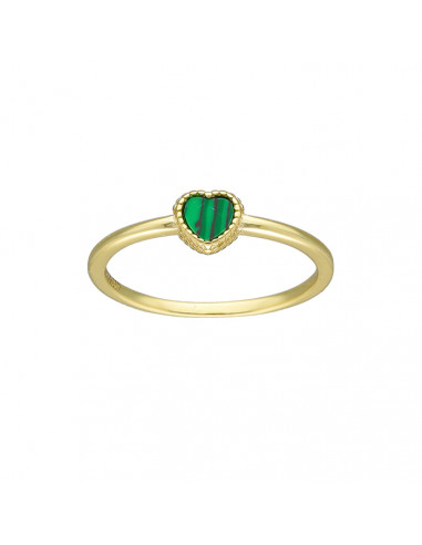 Anillo en plata de 1ª ley chapada en dorado con corazón verde en el centro.
