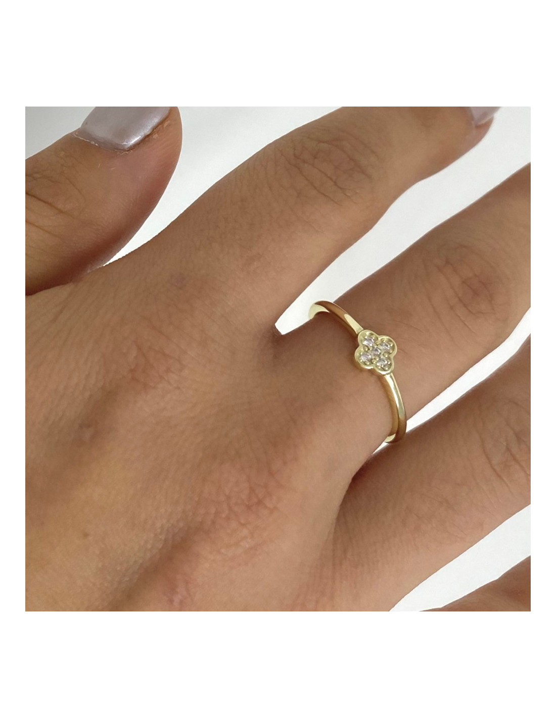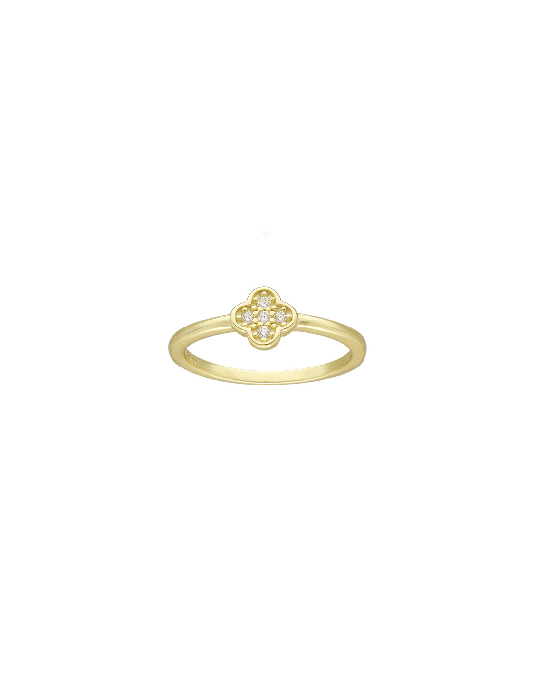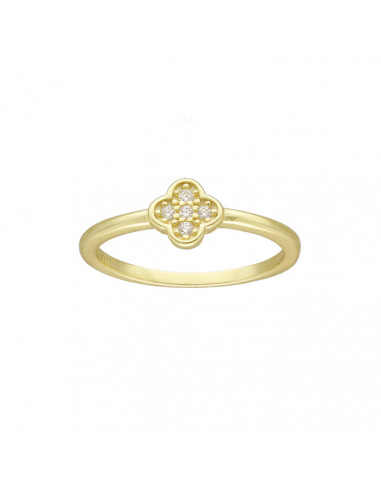 Anillo en plata de 1ª Ley con baño dorado y diseño de trébol central con circonitas