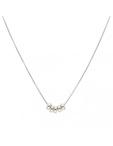 Gargantilla en plata de 1ª Ley con malla venecaina y 5 aritos en el centro.