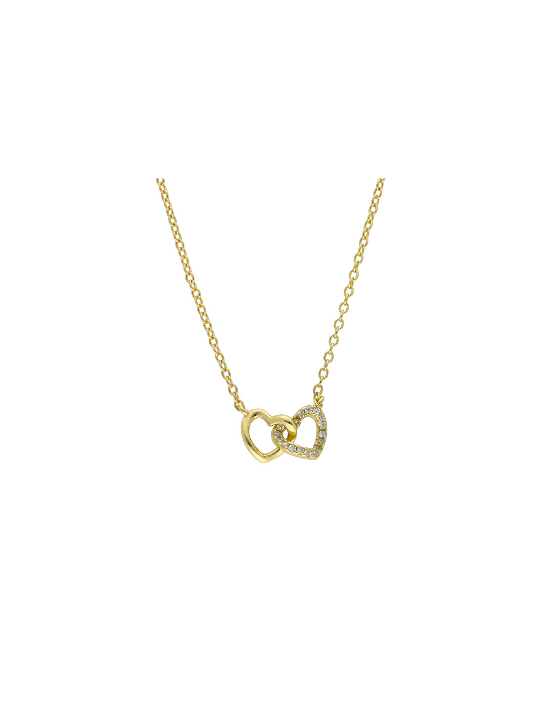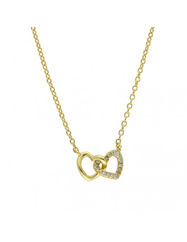 GARGANTILLA EN PLATA DORADA CORAZONES ENTRELAZADOS LISO/CIRCONITA
