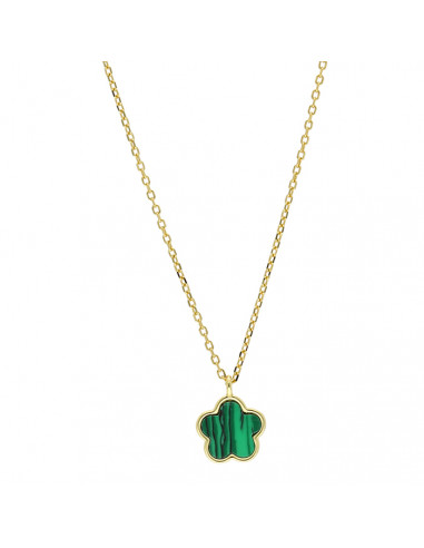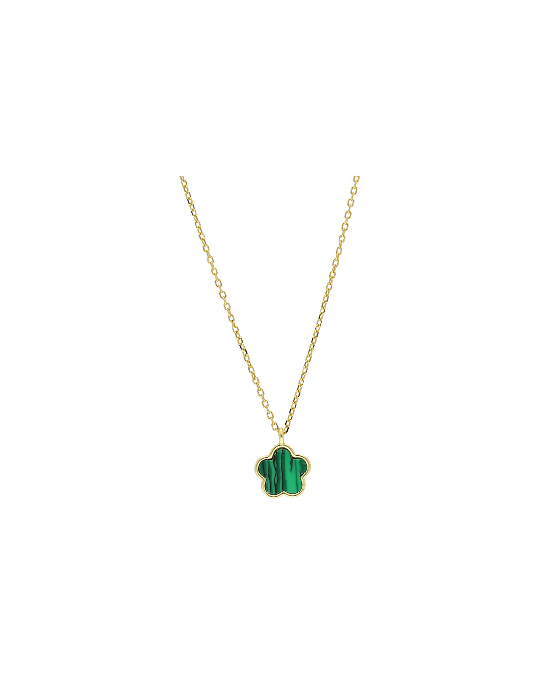 Gargantilla en plata de 1 Ley chapada en dorado con flor central verde.