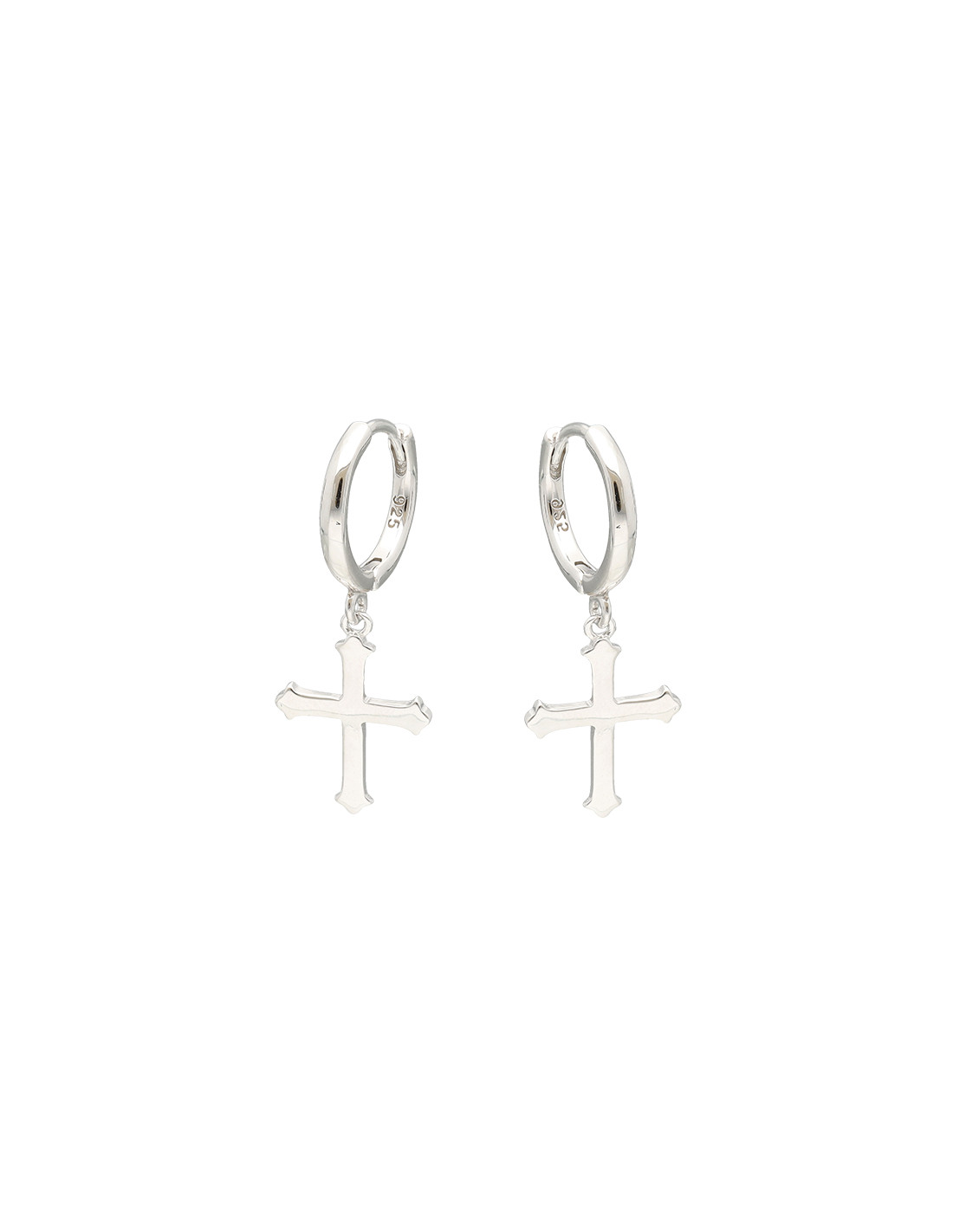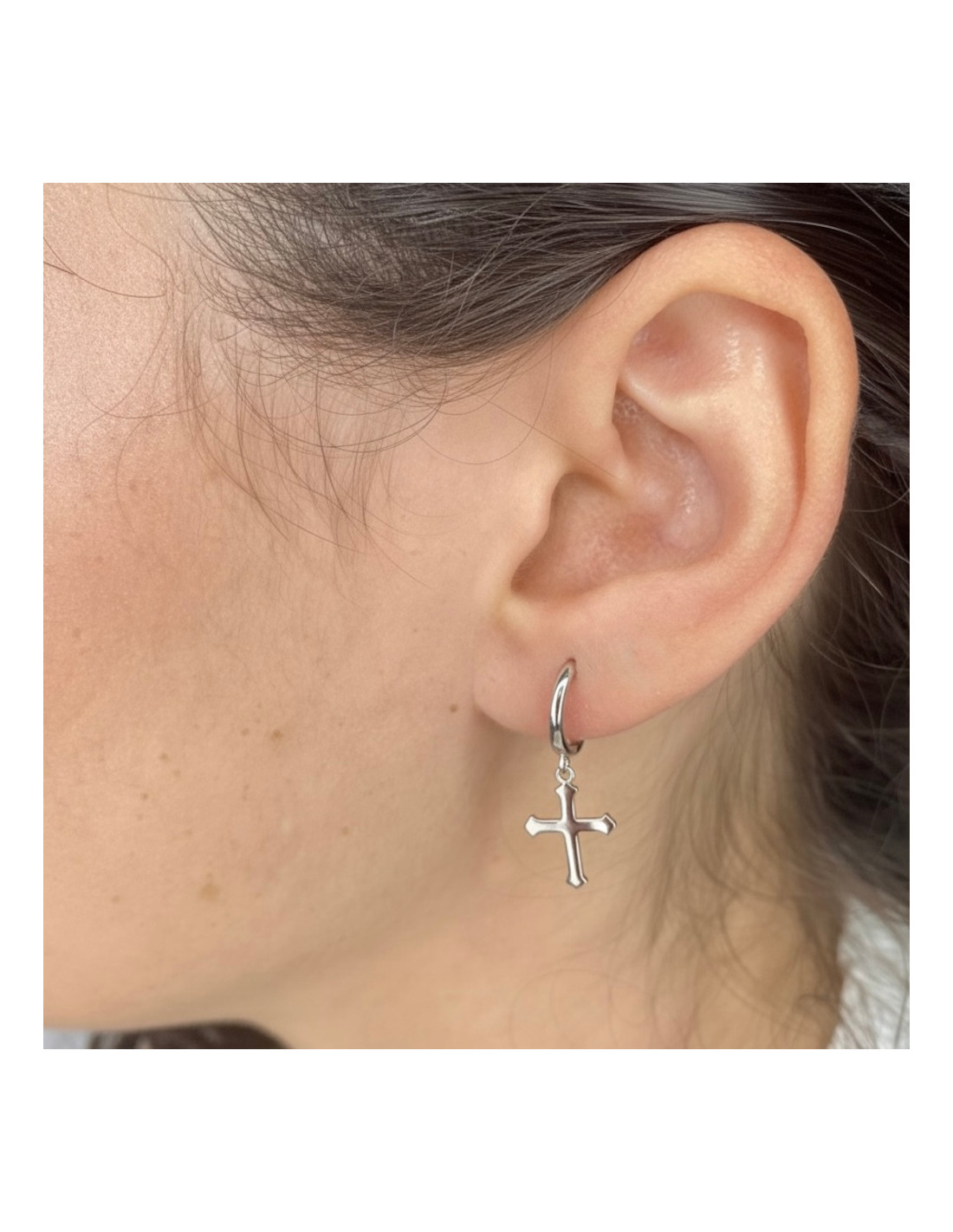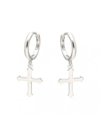 Pendientes largos en plata de 1ª Ley con diseño de criolla de la que cuelga cruz.