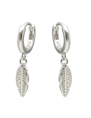 Pendientes largos en plata de 1ª Ley con diseño de criolla y pluma colgando.