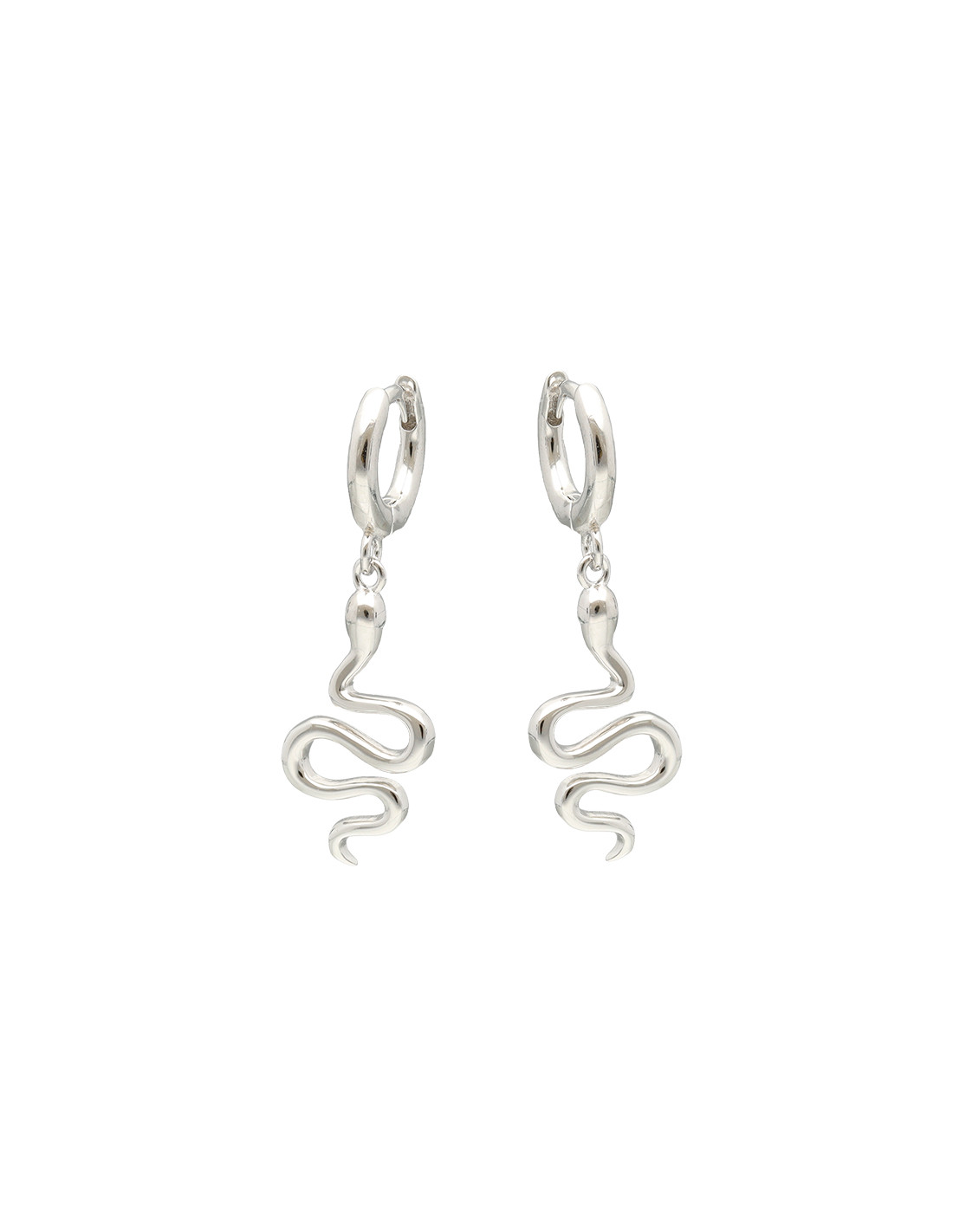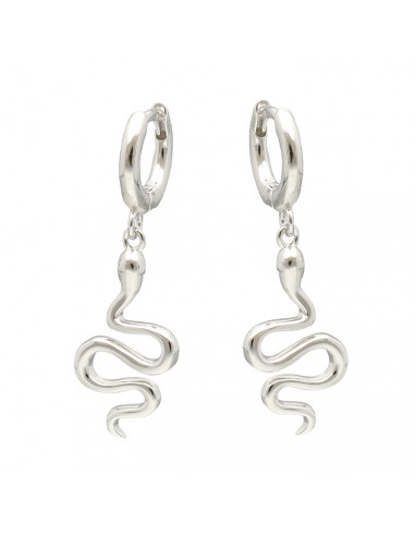 Pendientes largos en plata de 1ª Ley con diseño de criolla y serpiente colgando.