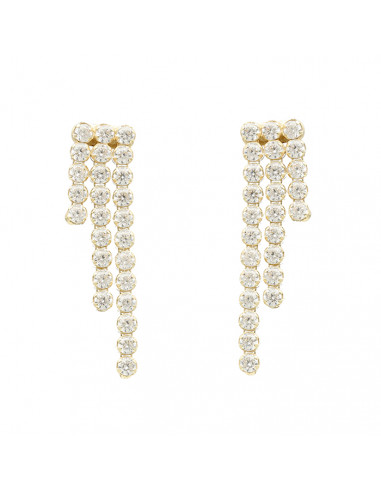 Pendientes largos en plata de 1ª Ley con baño dorado y diseño de tres líneas de circonitas en disminución