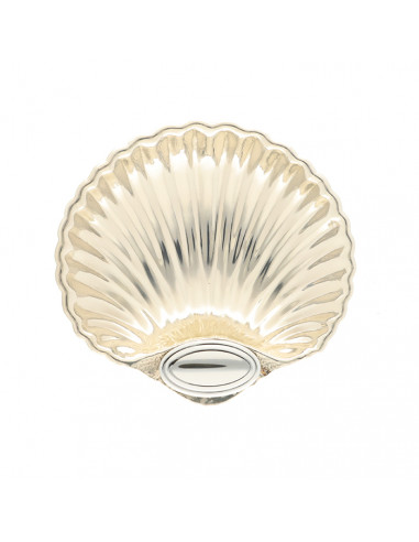 Concha de bautizo bilaminada con ovalo para grabar nombre y fecha.