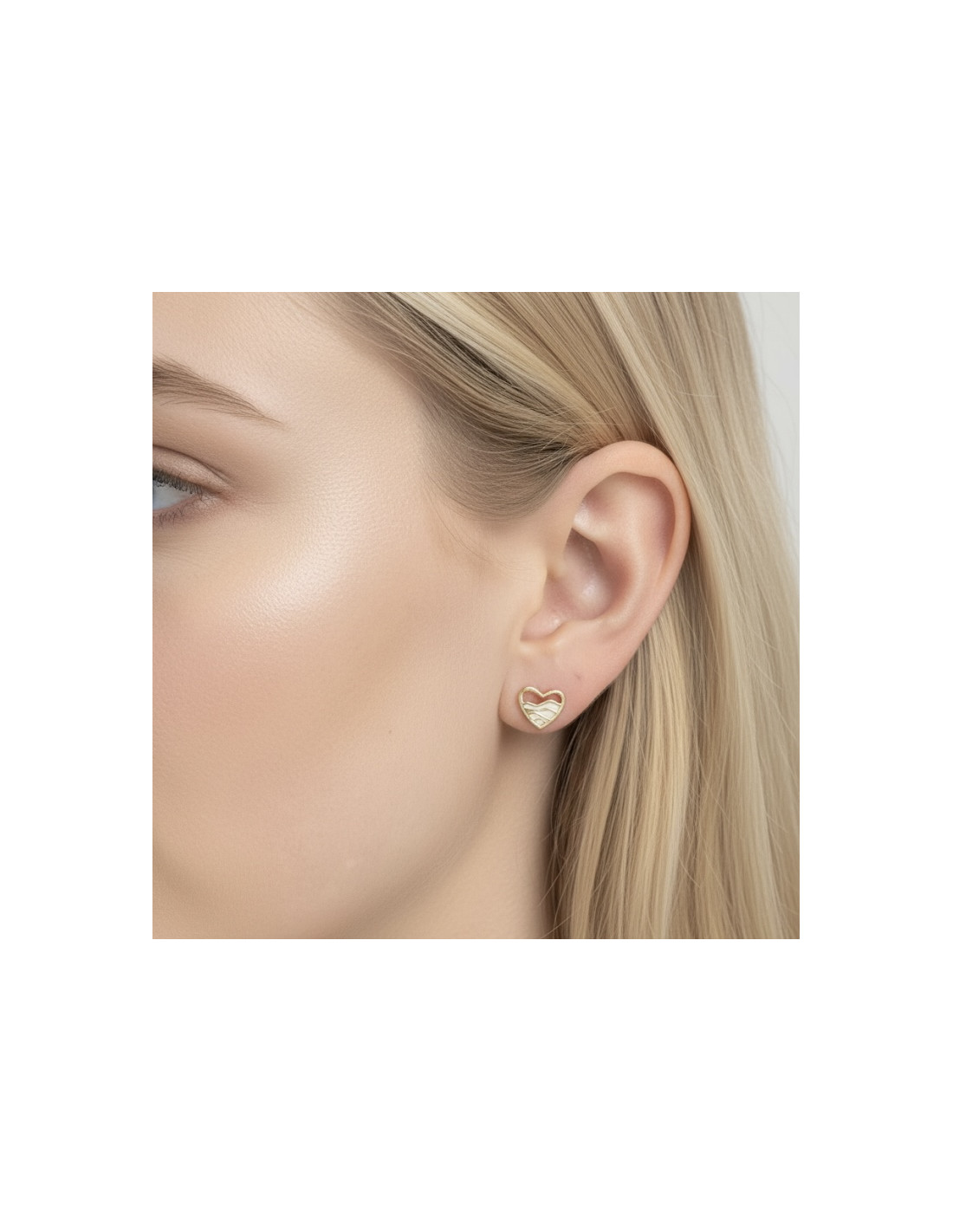 PENDIENTES EN ORO AMARILLO DE 9 QUILATES CON FORMA DE CORAZON CALADO NÁCAR ONDAS,CIERRE DE PRESIÓN