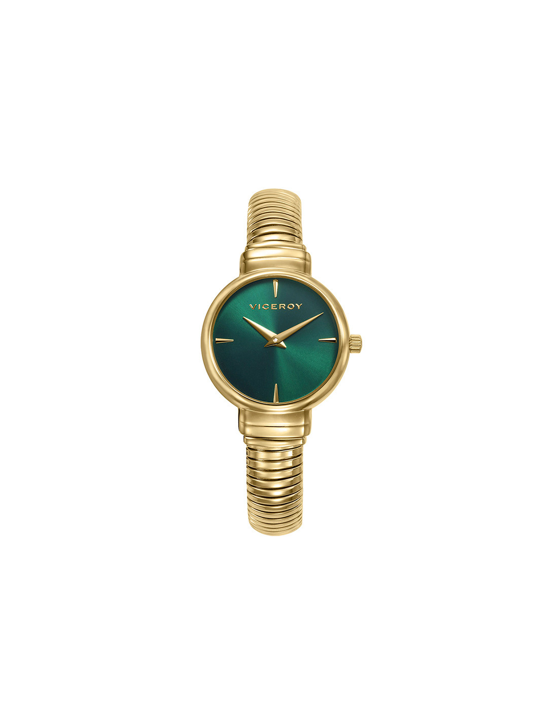 Reloj caja de acero IP dorado, brazalete de acero IP dorado, movimiento cuarzo analógico.