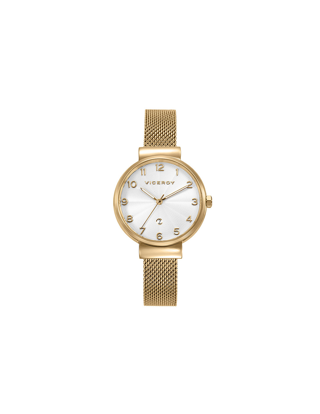 Reloj de mujer de Viceroy con caja de acero e Ip dorado, malla milanesa de acero Ip dorado, movimiento cuarzo analógico