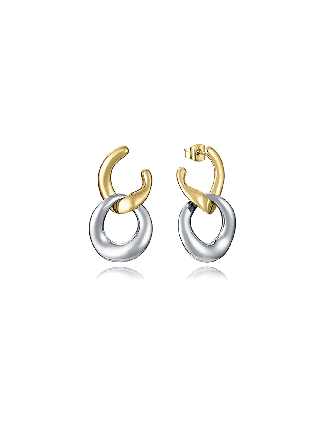 Pendientes largos en acero Ip de Viceroy con diseño de dos eslabones uno en dorado y otro en plateado, cierre en presión.