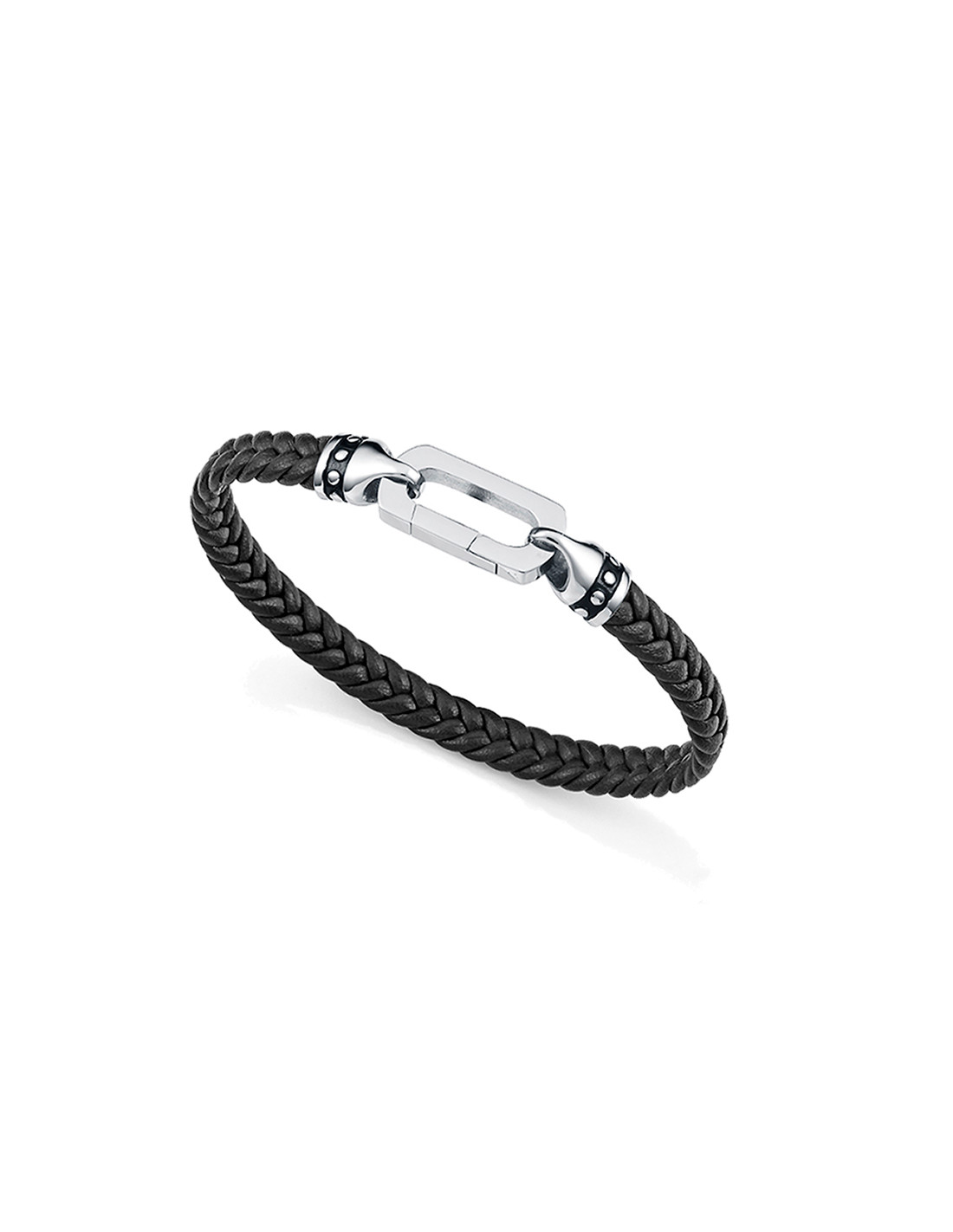 Pulsera de hombre de Viceroy en acero y cuero negro trenzado con diseño de mosquetón central en acero IP.