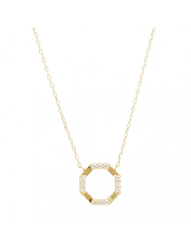 Gargantilla en oro de 18 quilates con colgante en forma de octógono y circonitas.