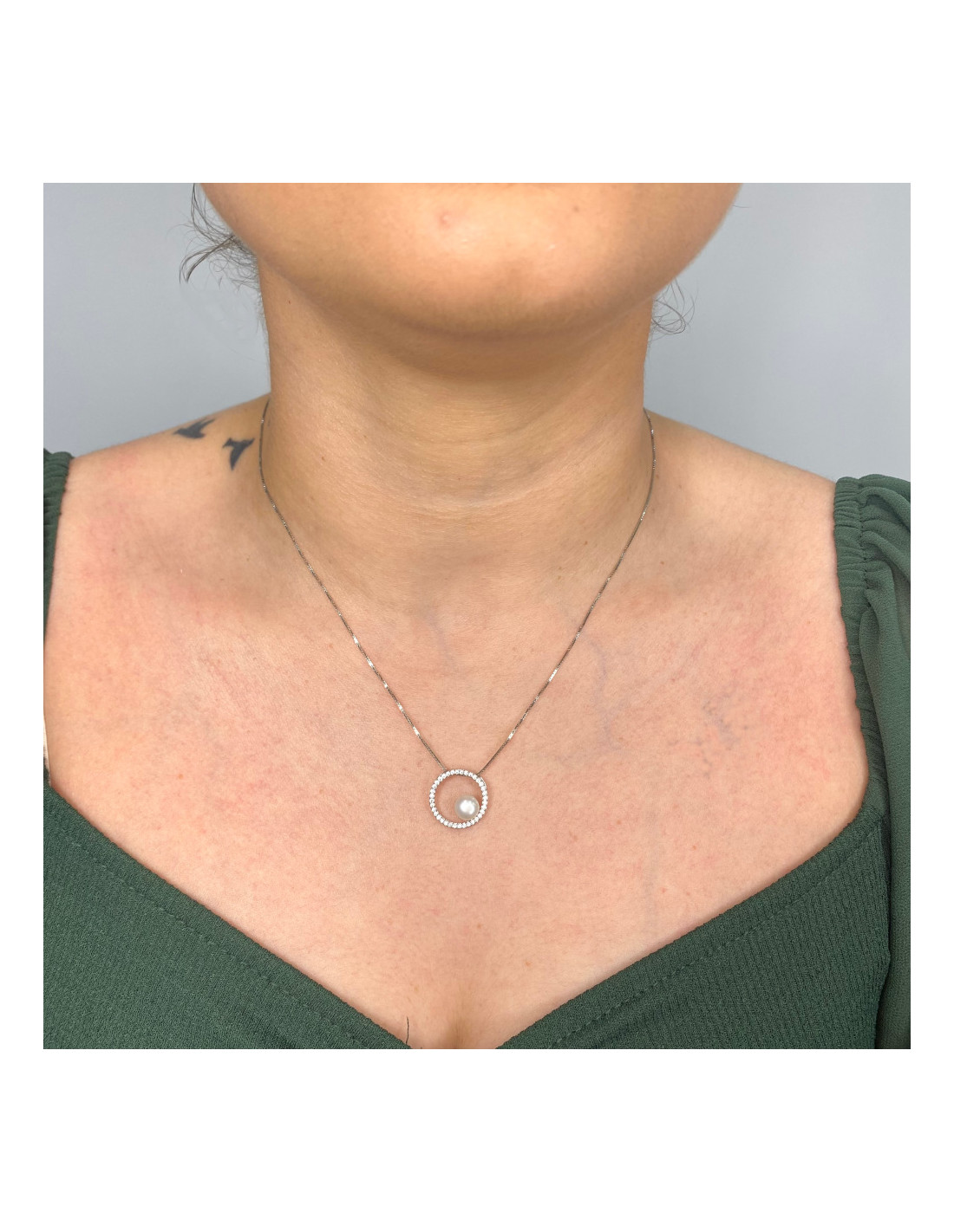 Gargantillas en plata GARGANTILLA CIRCULAR Y PERLAS 784026 39,90 € Gargantilla en plata 1ª Ley con colgante redondo formado por circonitas y perlas cultivadas. Colgante de 16 mm de diámetro. Perlas de 4 y 5 mm de diámetro. Largo de la cadena de 45 cm. Cierre de reasa. Añadir a carrito