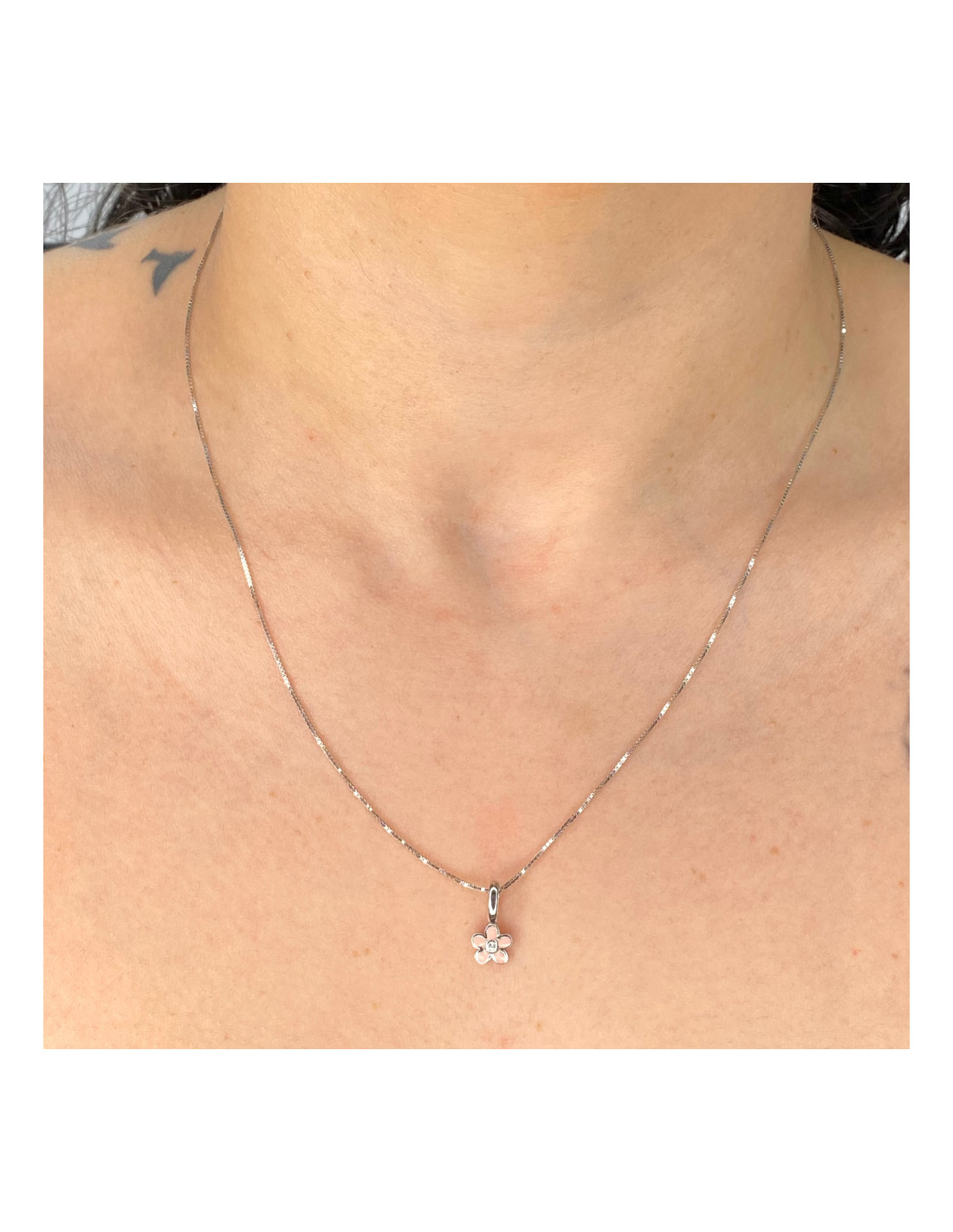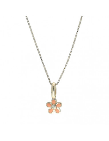 Cadena en plata de 1ª ley con colgante en forma de flor con esmalte de colores.