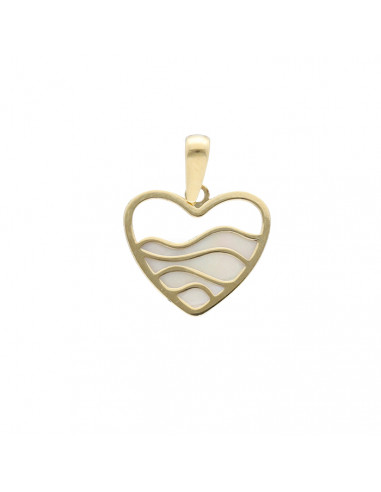 COLGANTE EN ORO CON DISEÑO DE CORAZON DE NACAR CON ONDAS