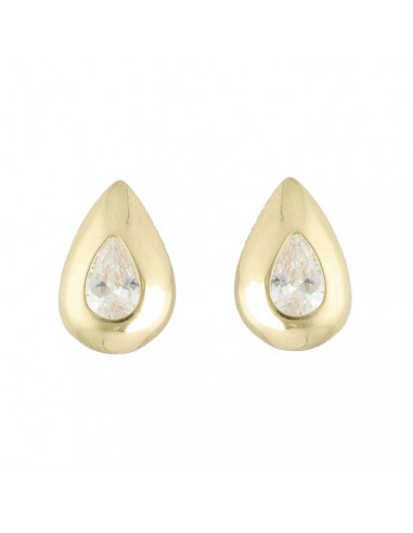 PENDIENTES EN ORO DE 9 QUILATES CON MODERNO DISEÑO EN GOTA Y CIRCONITA CENTRAL,CIERRE DE PRESIÓN