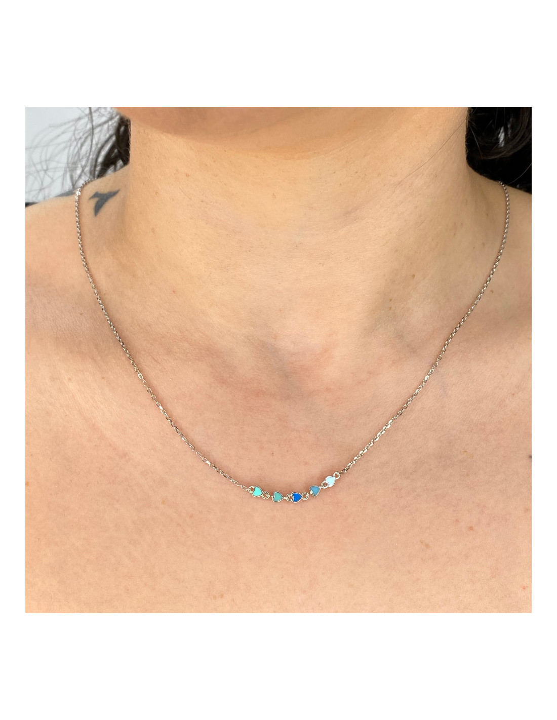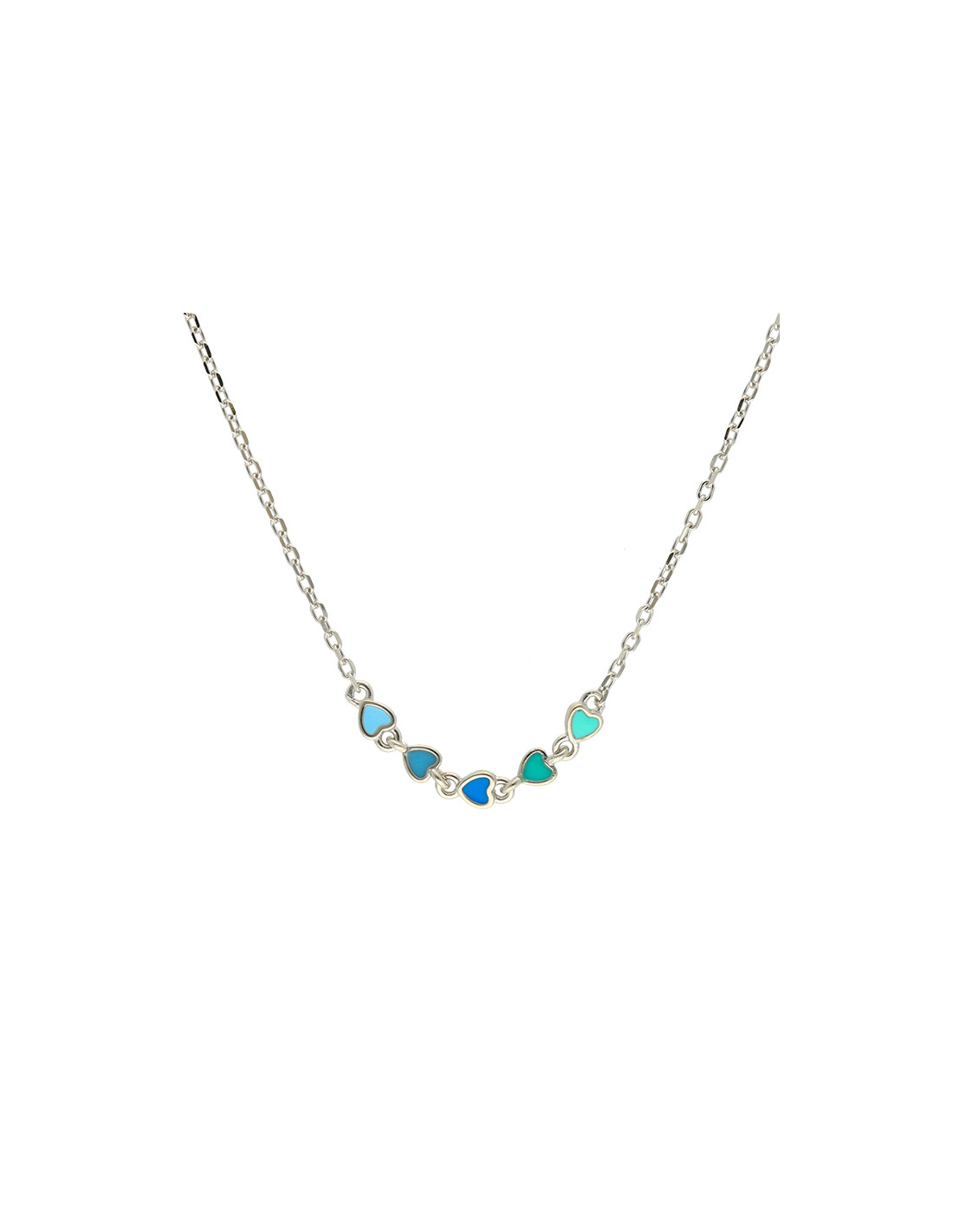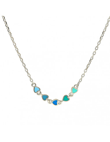 malla cadena tipo forsa con 5 corazones en el centro en esmalte en tonos azules