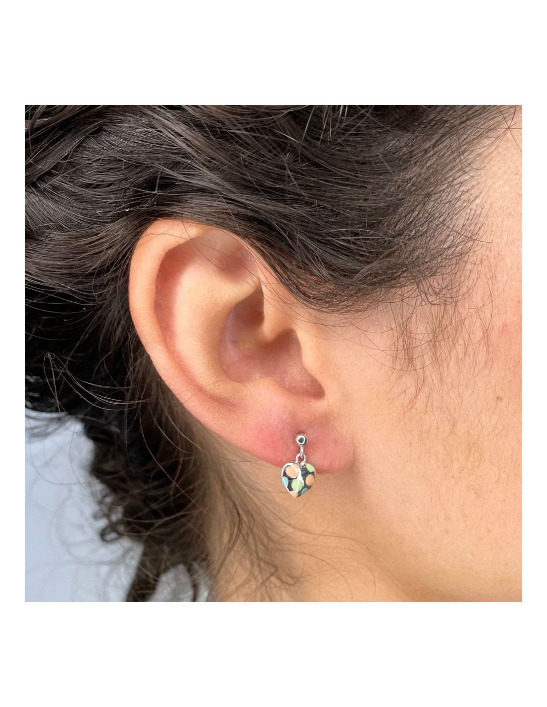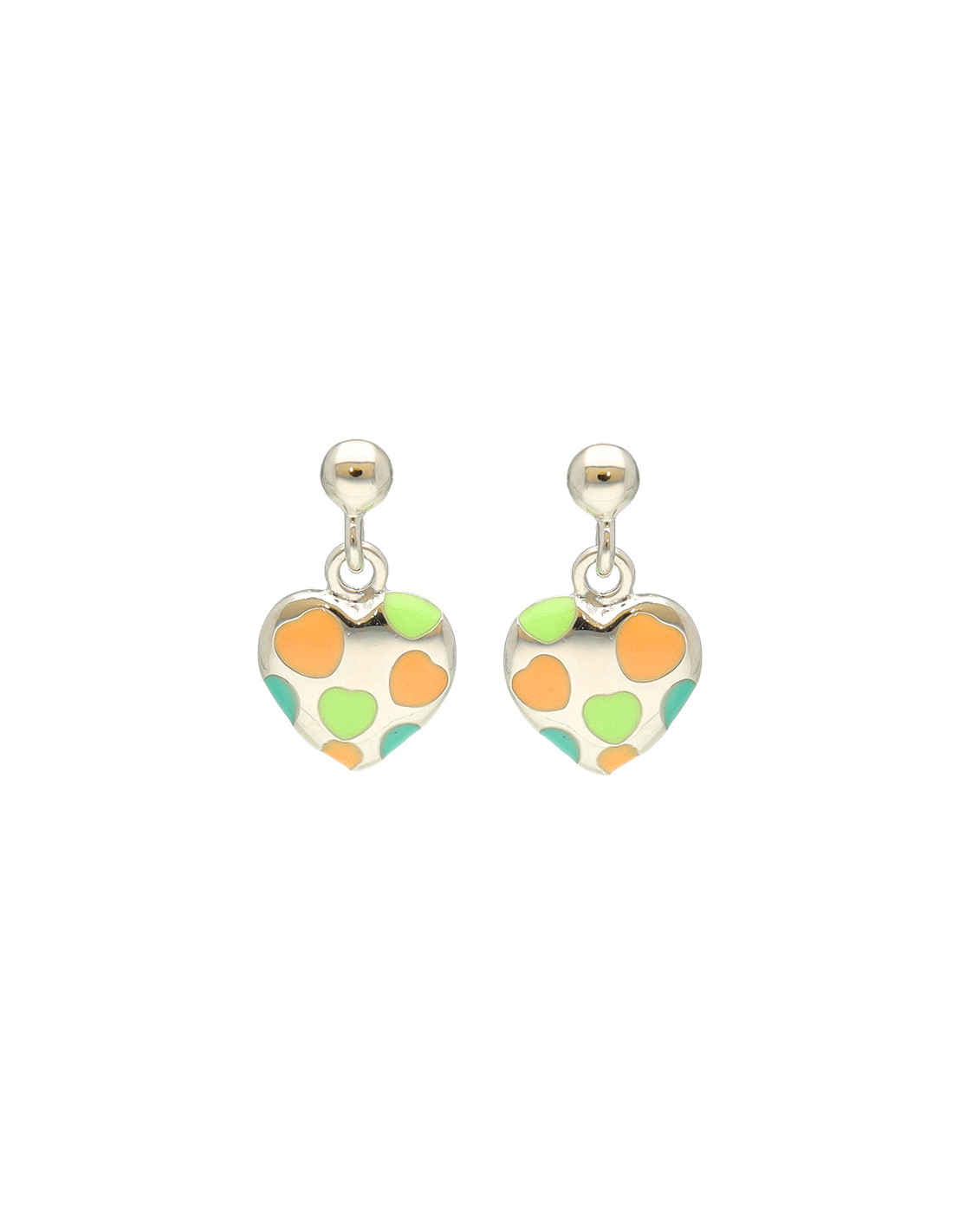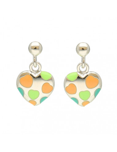 Pendientes en Plata de Primera Ley 925 de corazones colgando con corazones de esmalte dibujados