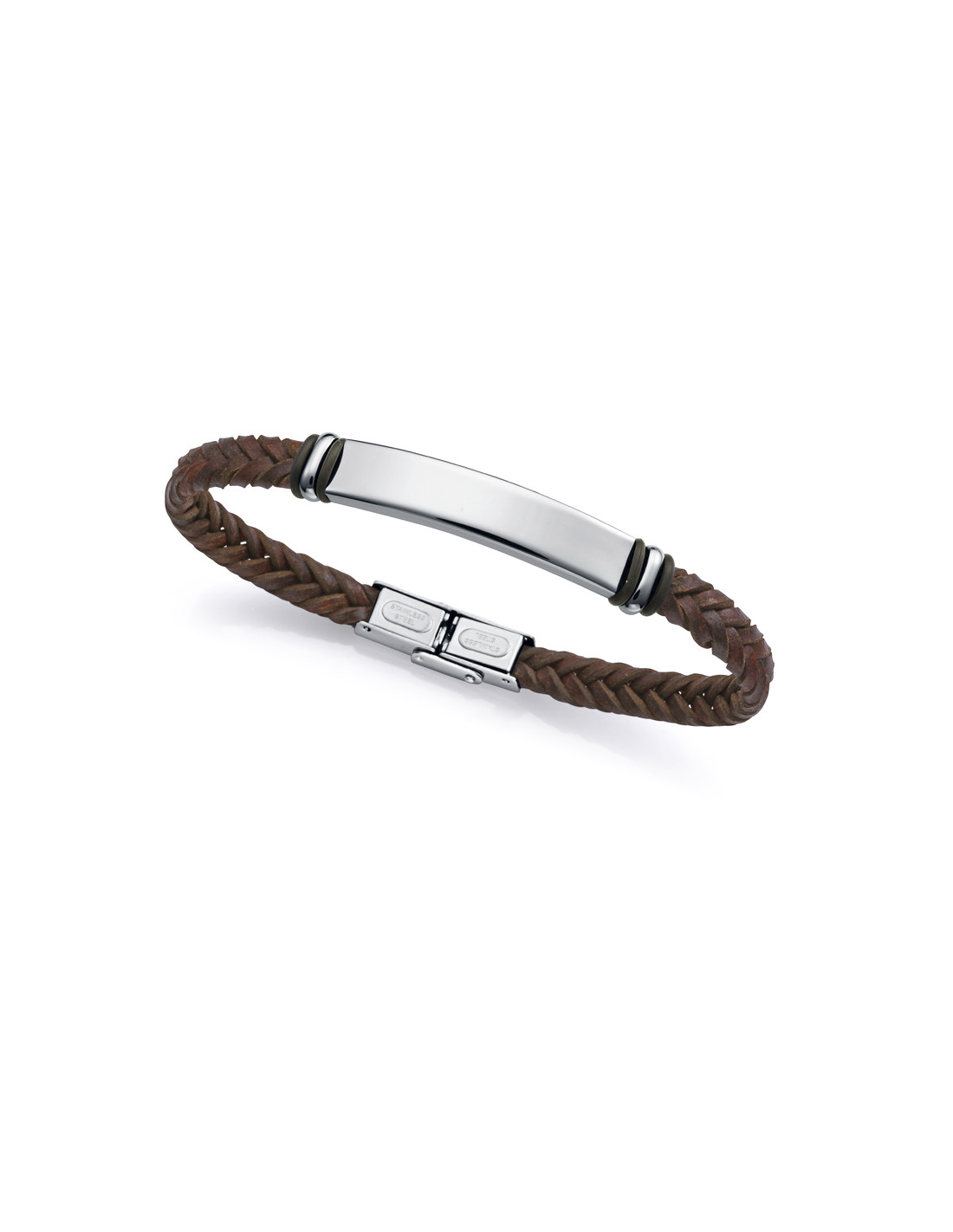 Pulsera de hombre que combina la resistencia del acero con la suavidad de la piel marrón. Con una longitud de 21,5 cm