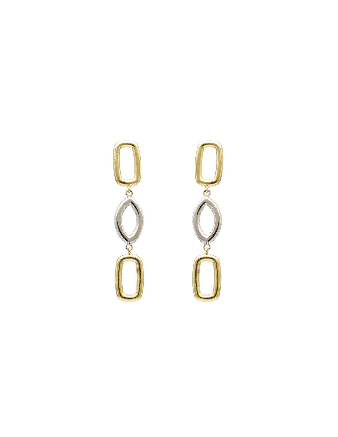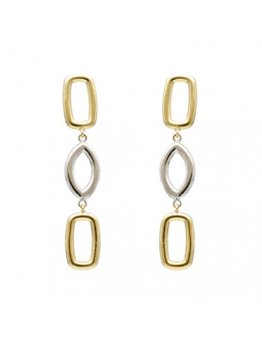 Pendientes largos, en oro blanco y amarillo de 18 quilates con formas cuadradas y ovales caladas