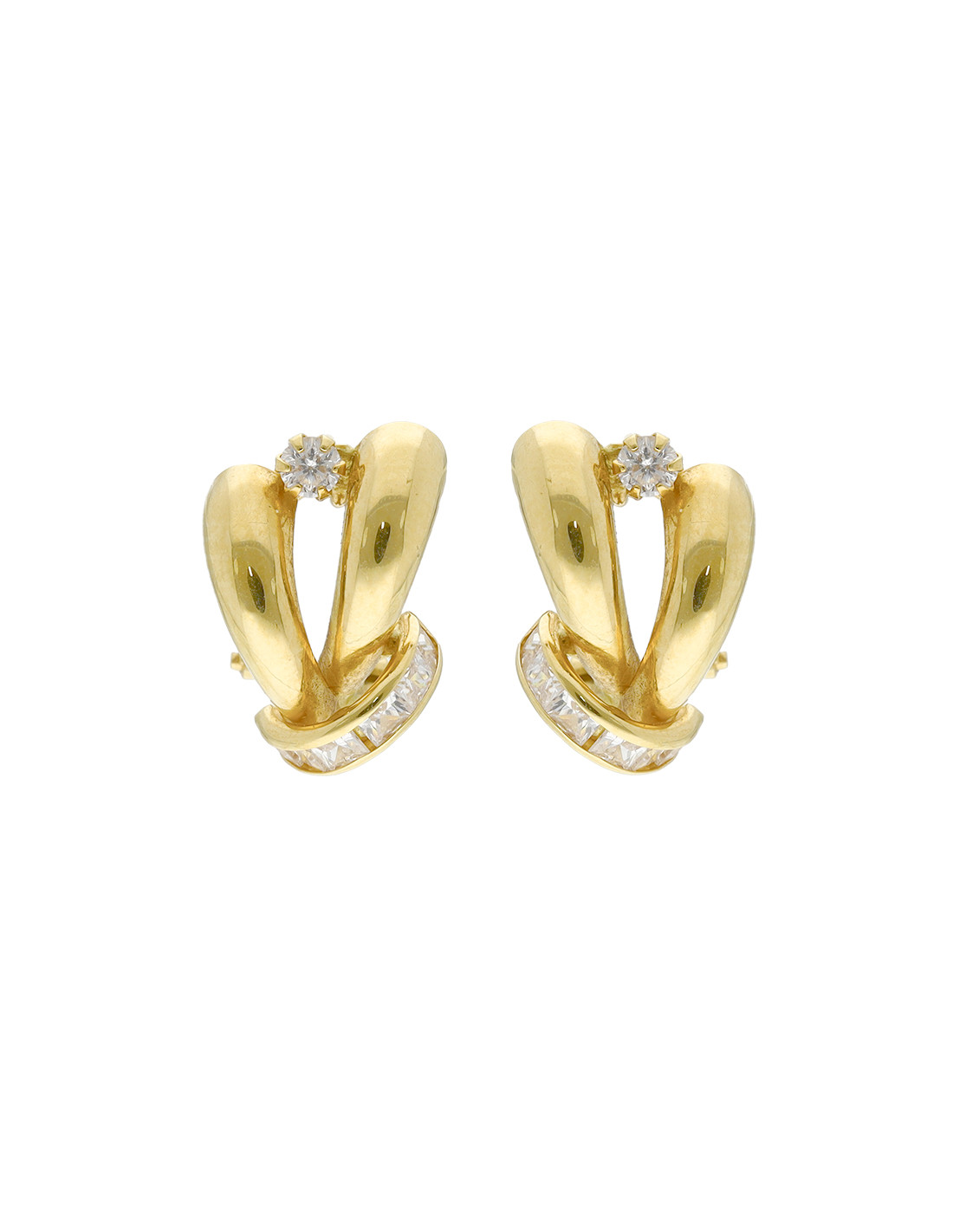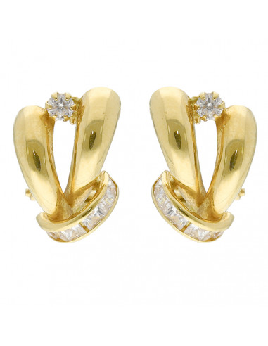 Pendientes en oro de 18 quilates con circonitas y cierre omega.