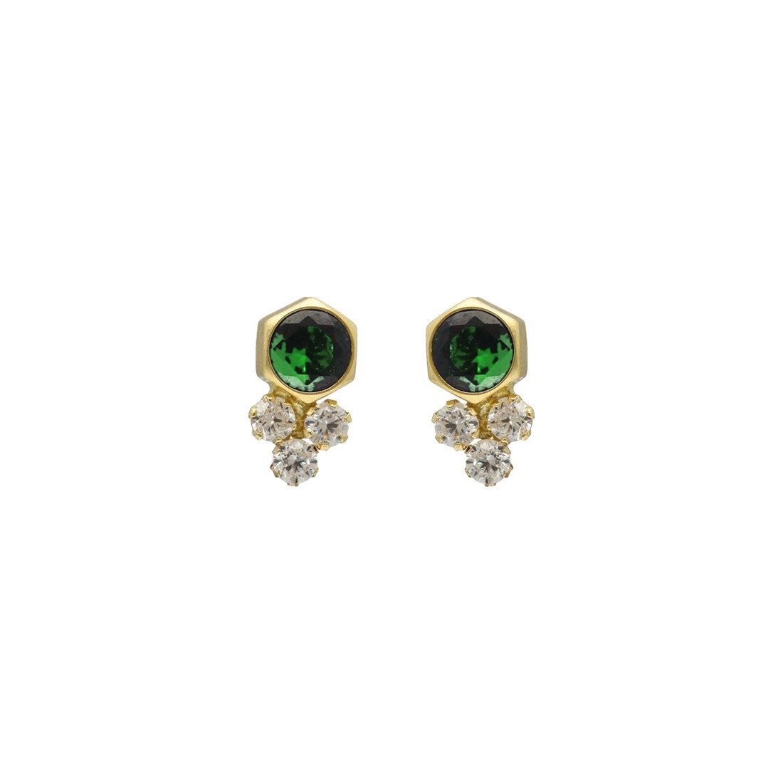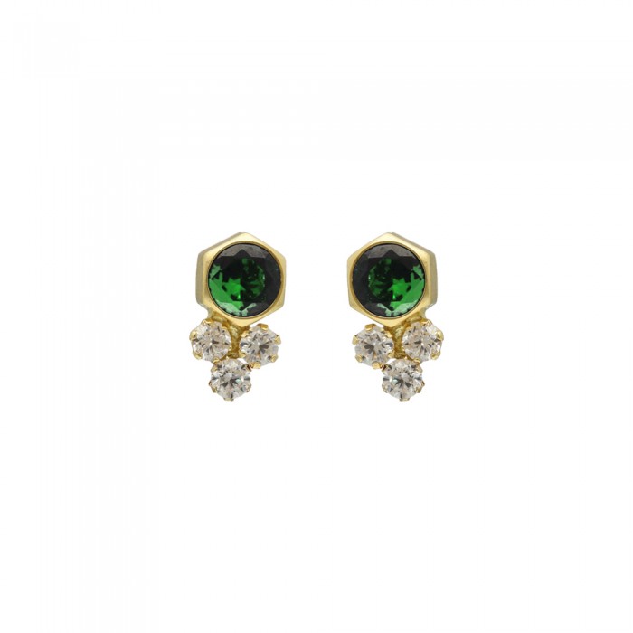 Pendientes en oro de 18 quilates con circonitas y centro verde. Cierre de rosca.