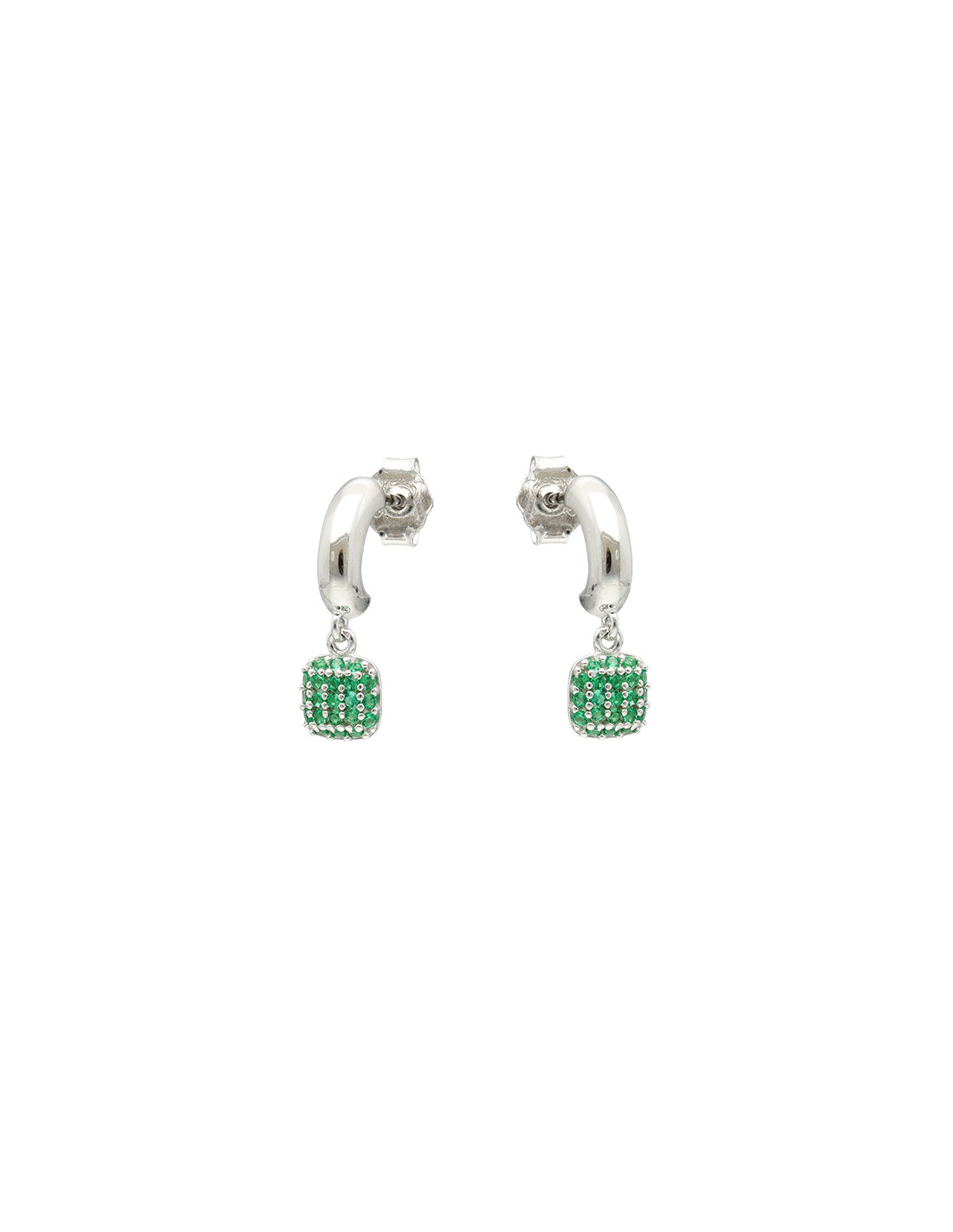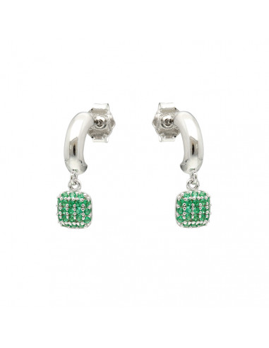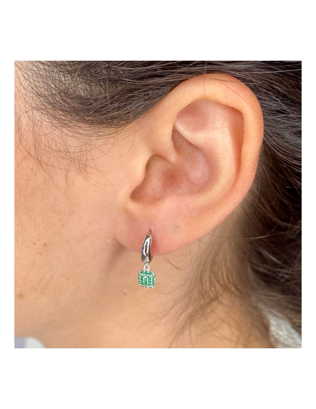 Pendientes en plata de 1ª ley con forma de aro y circonitas verdes.