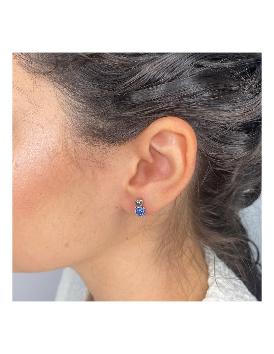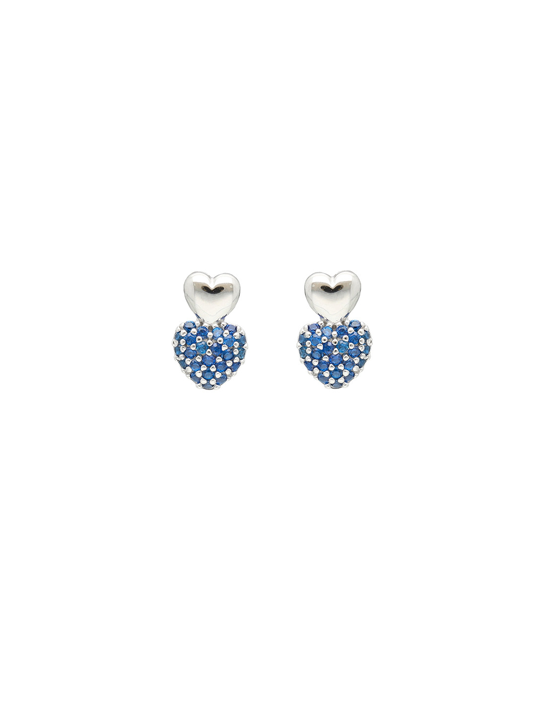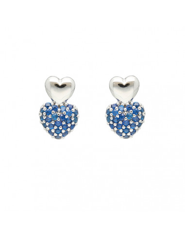 Pendientes en plata de 1ª ley con forma de corazones y circonitas azules.