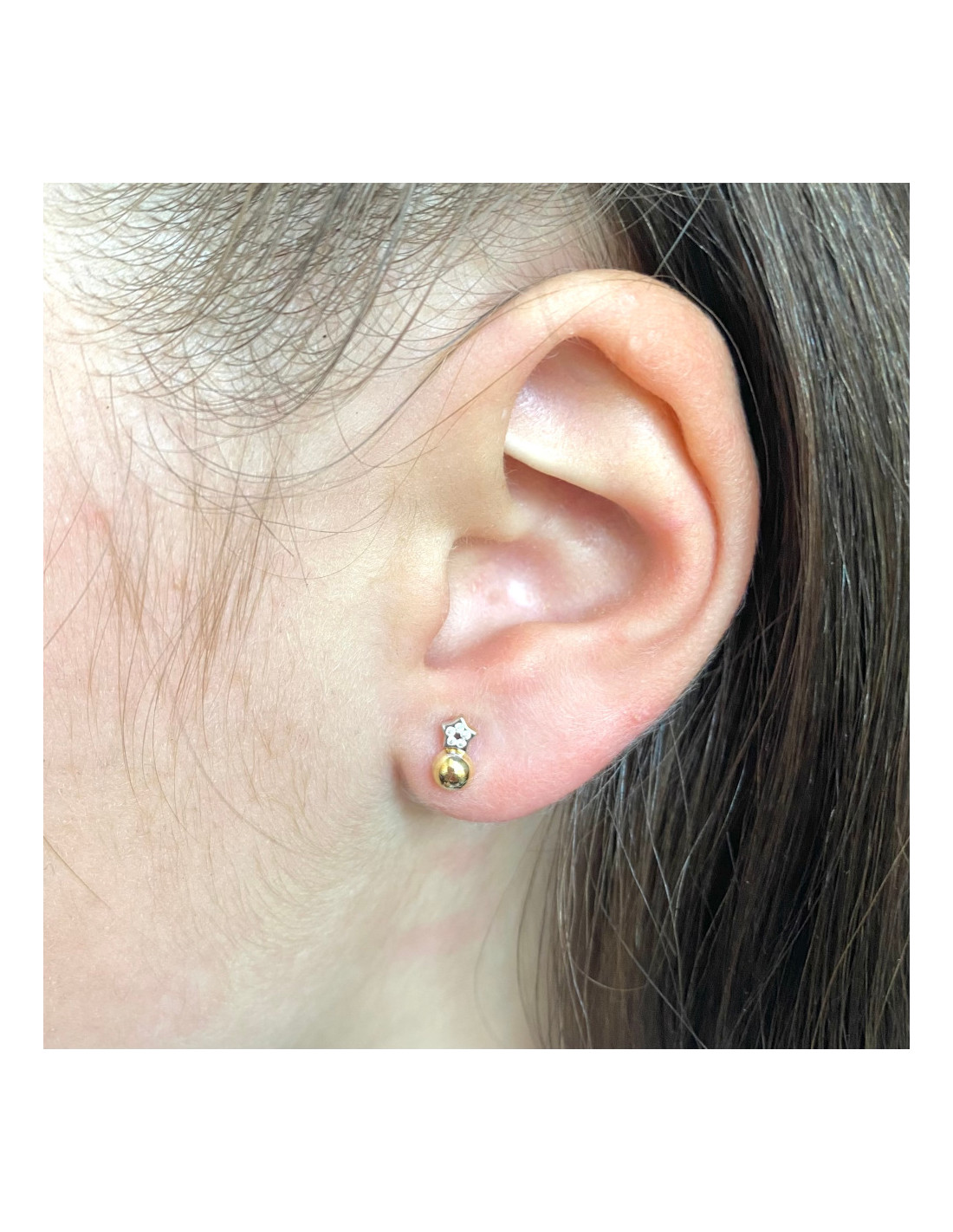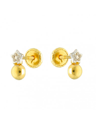 Pendientes en oro bicolor de 18 quilates, estrella de oro blanco con cinco circonitas blancas y circulo.