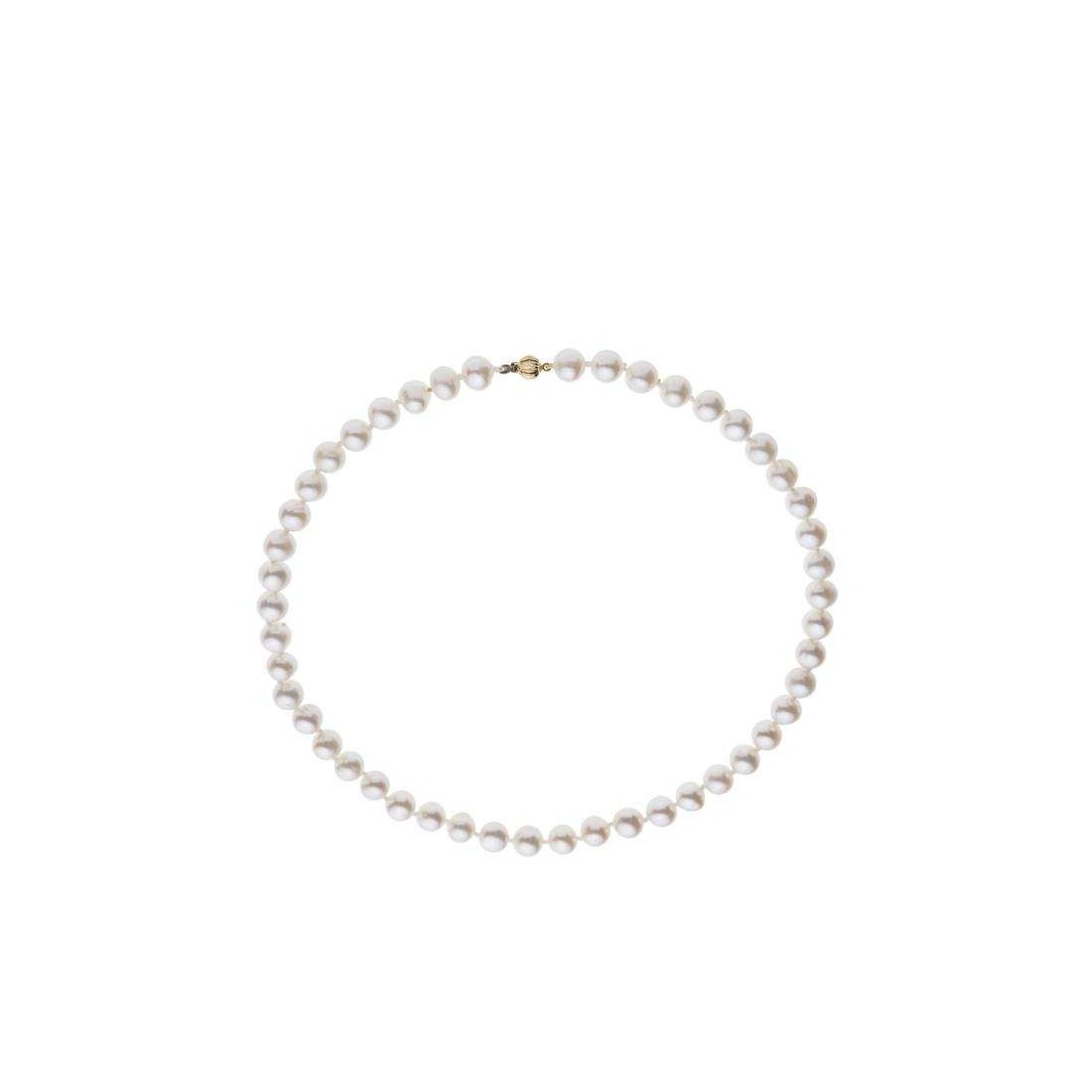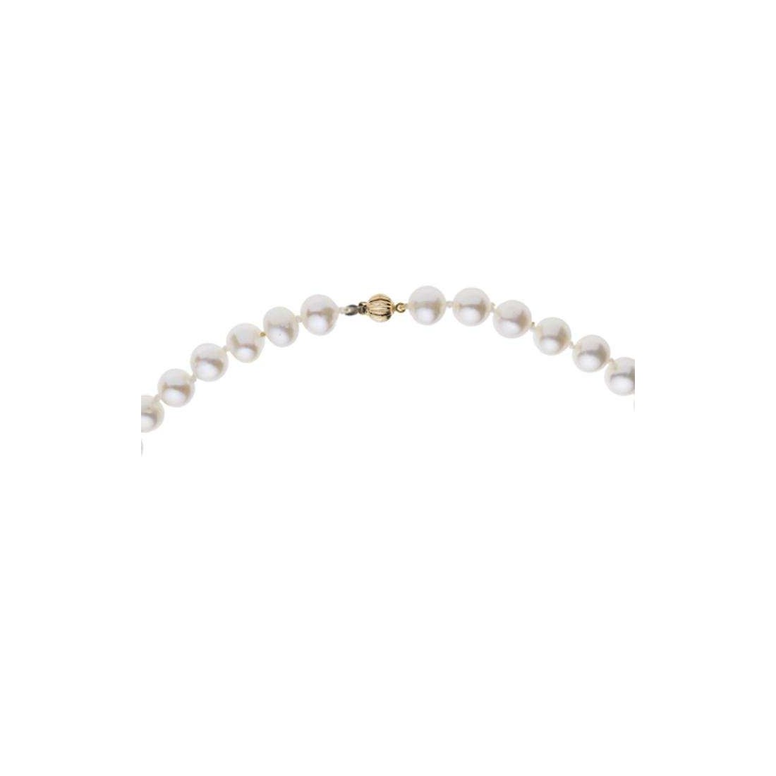 Collar de perlas cultivadas con cierre en oro de 18 Quilates. Tamaño de cada perla de 8 milímetros de diámetro. Largo del collar de 45 centímetros. Anudado nudo en cada perla